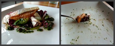 To start, Helen got the Olivia Salad, and loved it. When it arrived, she thought she might not like it because it’s just lettuce and vinaigrette (when Helen makes her own salads they are chock full of stuff, a la goat cheese/avocado/nuts/fruit/salmon/etc). But the smoked tomato vinaigrette was quite the hit with her! My mom and I each got the saffron-almond soup, and devoured it. This was definitely my favorite dish of the afternoon. Beautifully simple with just a hint of saffron, the soup came garnished with a perfect baguette crouton, avocado, and a drizzle of a great olive oil (a beautiful deep green against the vibrant orange soup). I didn’t take any pictures because we were too engrossed at this point.