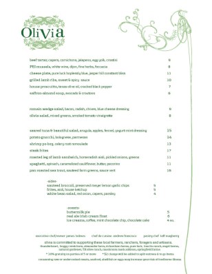 My mom’s in town! To celebrate her arrival, we went to lunch at Olivia. As it happens, we were at Olivia’s first lunch ever (they’ll be open for lunch every Friday and Saturday from now on). Man, I love this restaurant. We got there about noon, and were greeted warmly by pretty much the whole staff- there were only a few other customers at this point.