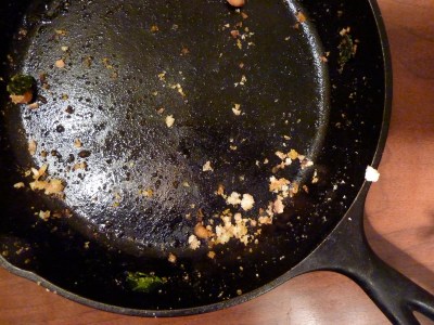 - Put three tablespoons of the oil in a skillet large enough to hold chickpeas in one layer over medium-high heat. When it’s hot, add chickpeas and sprinkle with salt and pepper.