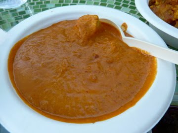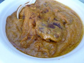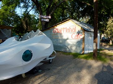 Helen and I dropped in a few days ago, and friends, it was just perfect.  Helen nailed it when, after our dinner, she said that it was the perfect blend of Austin and Indian food.  So true.  You can see in both pictures above that the dining area is flanked by an awesome bicycle-powered 80 foot snake.  There’s also a giant praying mantis closer to the truck.  Why? I have no idea.  But they, combined with the gypsy-like curtained pavilion and dreadlocked, tattooed waiters, give this place a magical, mystical Austin vibe.  And on top of that, the food is incredible.  To wit: