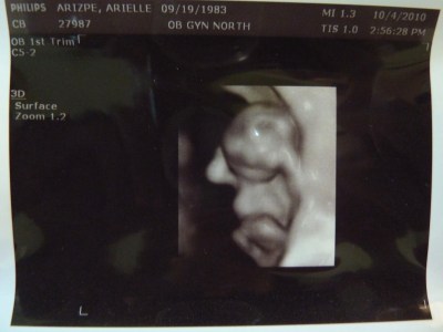 This photo was taken in early October at our first doctor’s appointment. At that time the baby was 3.76 centimeters long, but he/she will have doubled in size since then and should now be about the size of a lemon! And look decidedly less like a gummy bear!