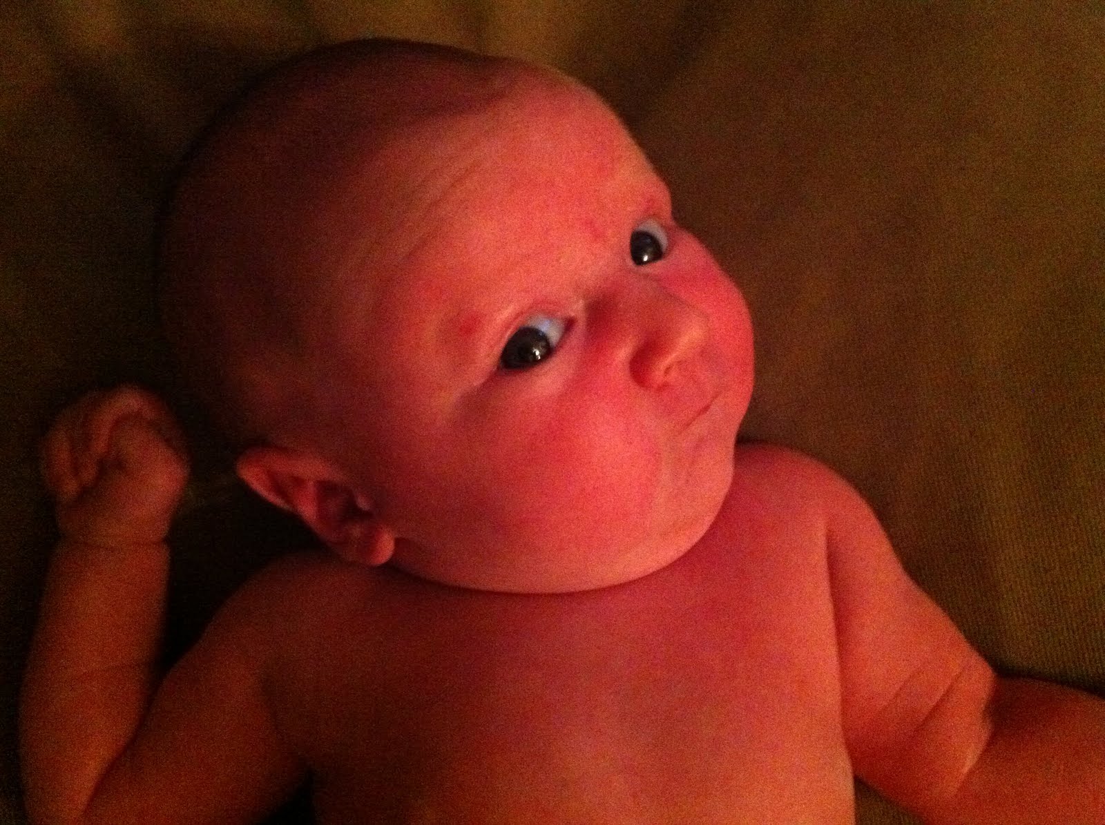 What a cutie! And no too much info at all. At least you didn't post pictures of your afterbirth or anything. That would have been too much. My fave picture is the last one. Where he's looking at you like “what the hell? tremors!?”