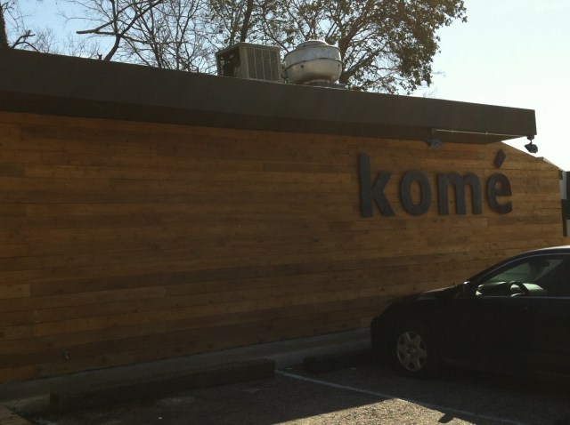 Nice shot, huh? I’ve got a real eye for photography- the way I was careful to include the parking lot and that car and whatever that kettle thing is on the roof. Bad shot aside, komé is a really fun new spot on Airport Boulevard- a place that could use some fun new spots (House Pizzeria aside- that place has still got it!).