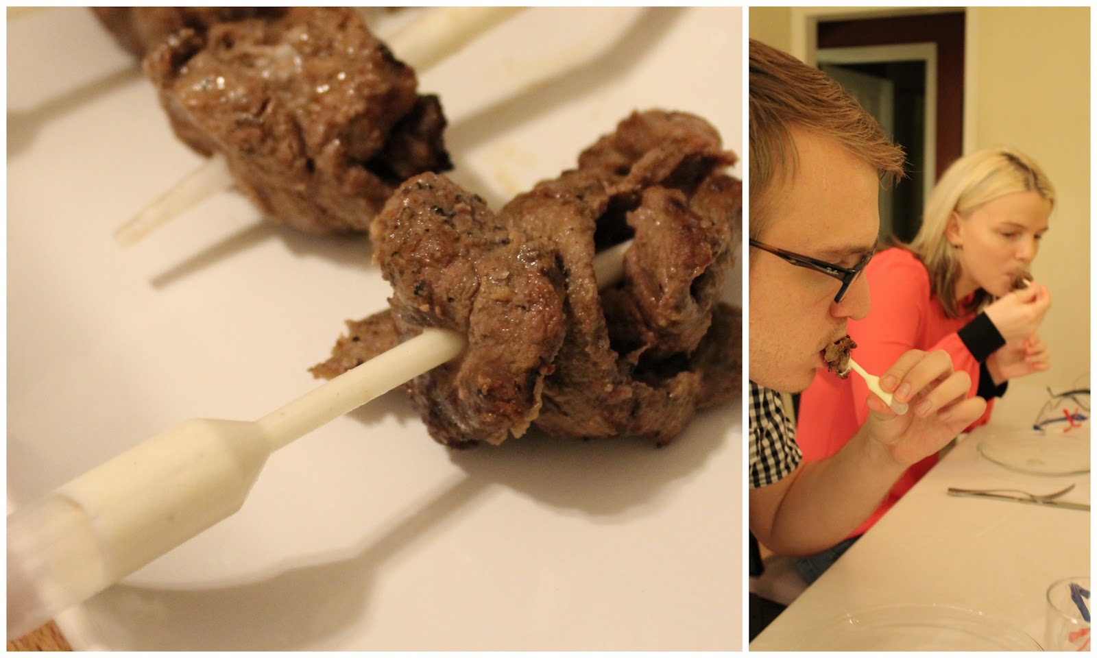 The second course: Pipette.  These turned out great! Oui, Chef’s herbed beef skewers are insanely good, and the horseradish cream in the pipette worked perfectly.  I don’t know if people are going to be rushing out to buy pipettes for skewers, but it is a totally fun concept.  You get the perfect amount of sauce without having to worry about people double-dipping in a communal bowl. I kid! But really, I think this is a concept worth repeating.