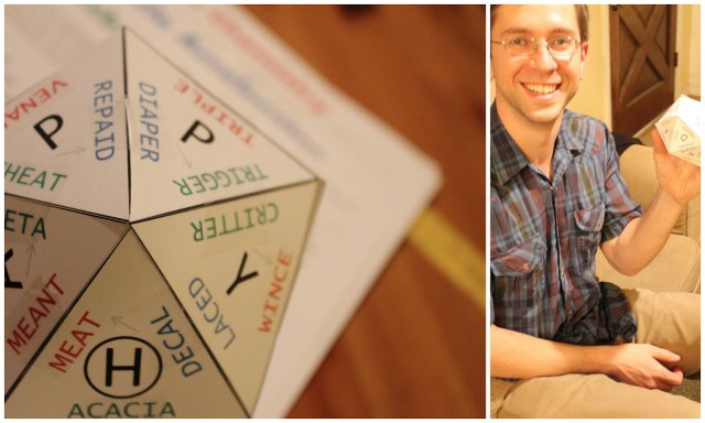 Fun fact: After dinner, we geeked out by solving a series of science-themed puzzles that my husband, Andy, created, which culminated in the creation of an icosahedron that spelled out “Happy Birthday Dustin!”