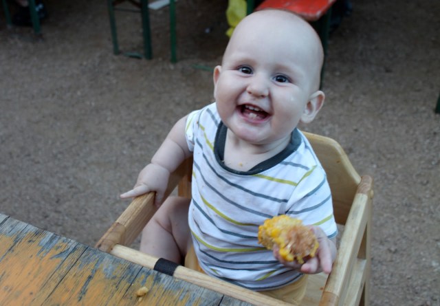 Henry held onto that drumstick for almost 30 minutes, slowly and steadily gumming off all the fried chicken-goodness with his seven tiny teeth.