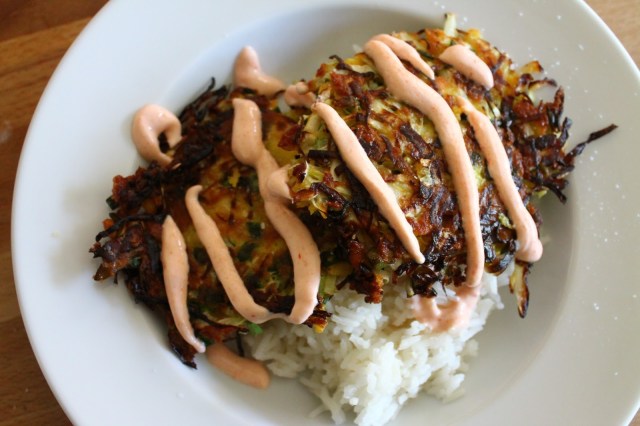 These cabbage and scallion pancakes are easy, delicious, and have only a few ingredients. They’re also wonderfully flexible- you can toss anything you’ve got into the mix (leftover meat bits, carrots, what-have-you) and they’ll still come out tasty.