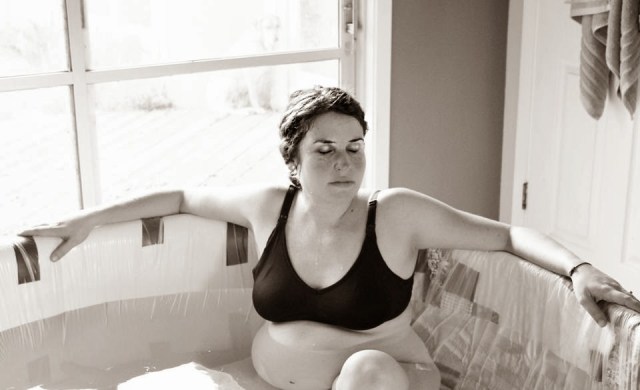 Monika said I should get into the tub. Oh, but it felt so much better in there! The contractions were still intense, but in the tub they became tolerable, and my back felt so much better.