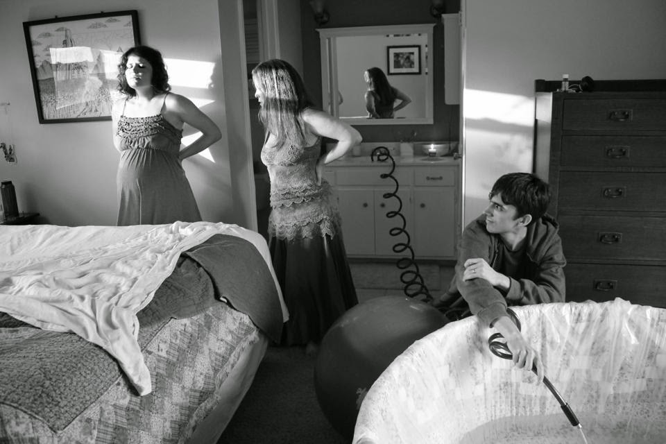 When Monika arrived, she got set up and then checked me. She said “you’re a good 5!”, and I completely lost my shit. I had all but convinced myself that I was fully dilated, that I’d be pushing soon, and that this birth was going to be much shorter and easier than Henry’s. When she said I was a 5, only halfway, all of my deepest fears about this birth dragging on like Henry’s did bubbled up, and I was terribly worried that I wouldn’t be able to handle it again and I’d have to go to the hospital and get an epidural. That’s why I look so miserable in so many of the following pictures.