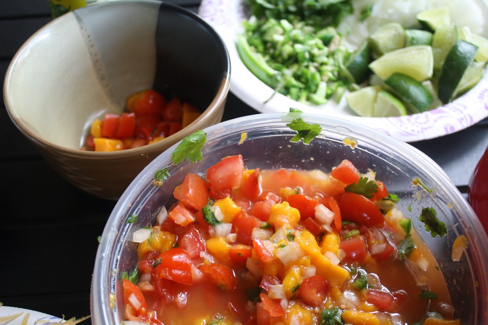Dinner the next night was fish tacos featuring giant snapper caught by Jordan on an earlier trip and grilled up beautifully by Jeff. This is my sister’s delicious mango salsa.