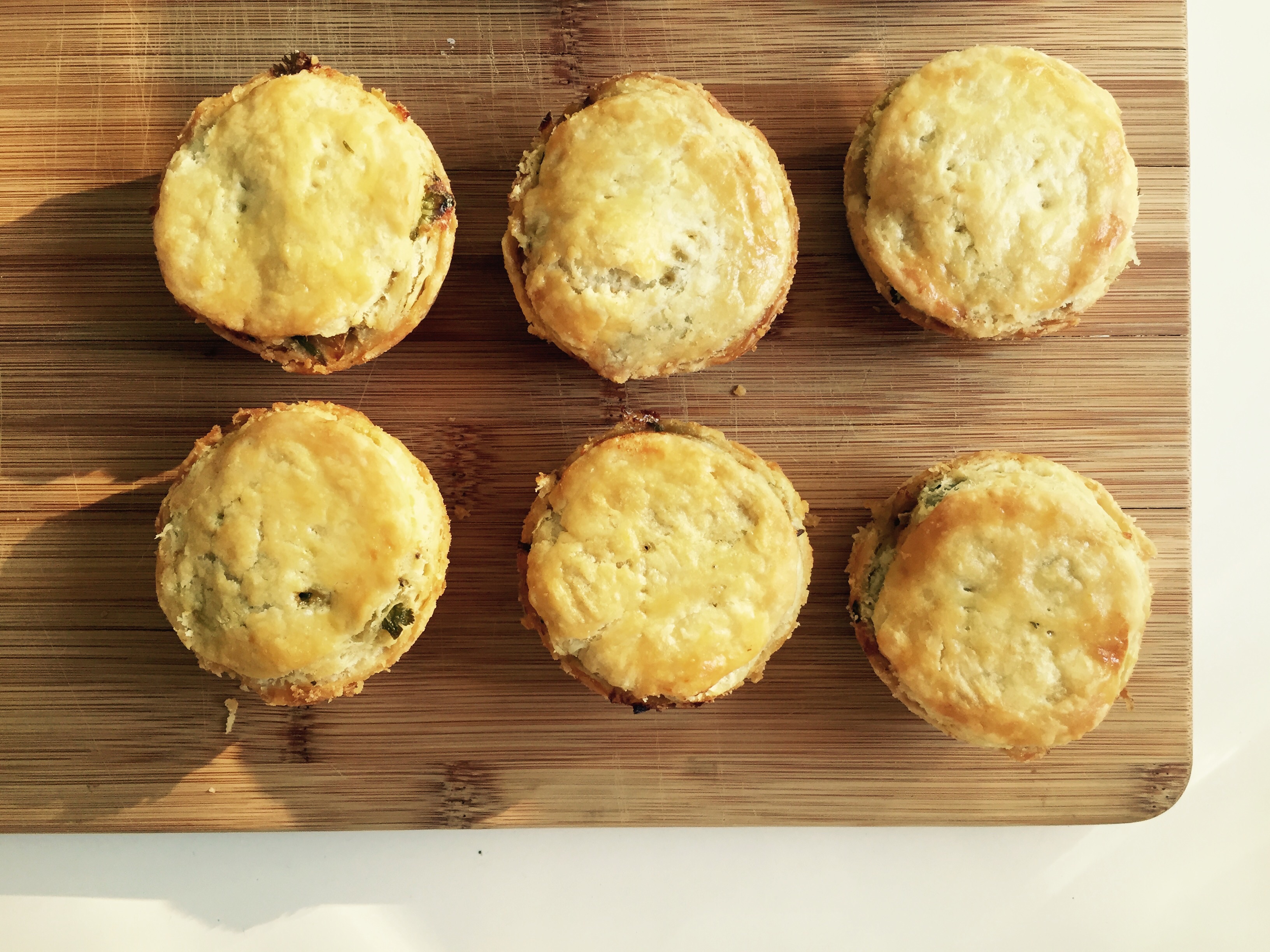 Root Vegetable Pies. These are filled with curried root vegetables, cilantro, and aged cheddar and are totally crowd-pleasingly amazing. I don’t have large muffin cups, so made 12 regular muffin-sized pies instead of the six larger ones. Even so, I had enough filling leftover to make another dozen, except I ran out of dough. I froze the filling to make another batch in a few weeks, but next time I’ll double the dough ingredients and make 24. You could also just make one big double crust pie if you don’t want the fussiness of making the mini ones. This is from Plenty More, a great vegetarian cookbook by Ottolenghi.
