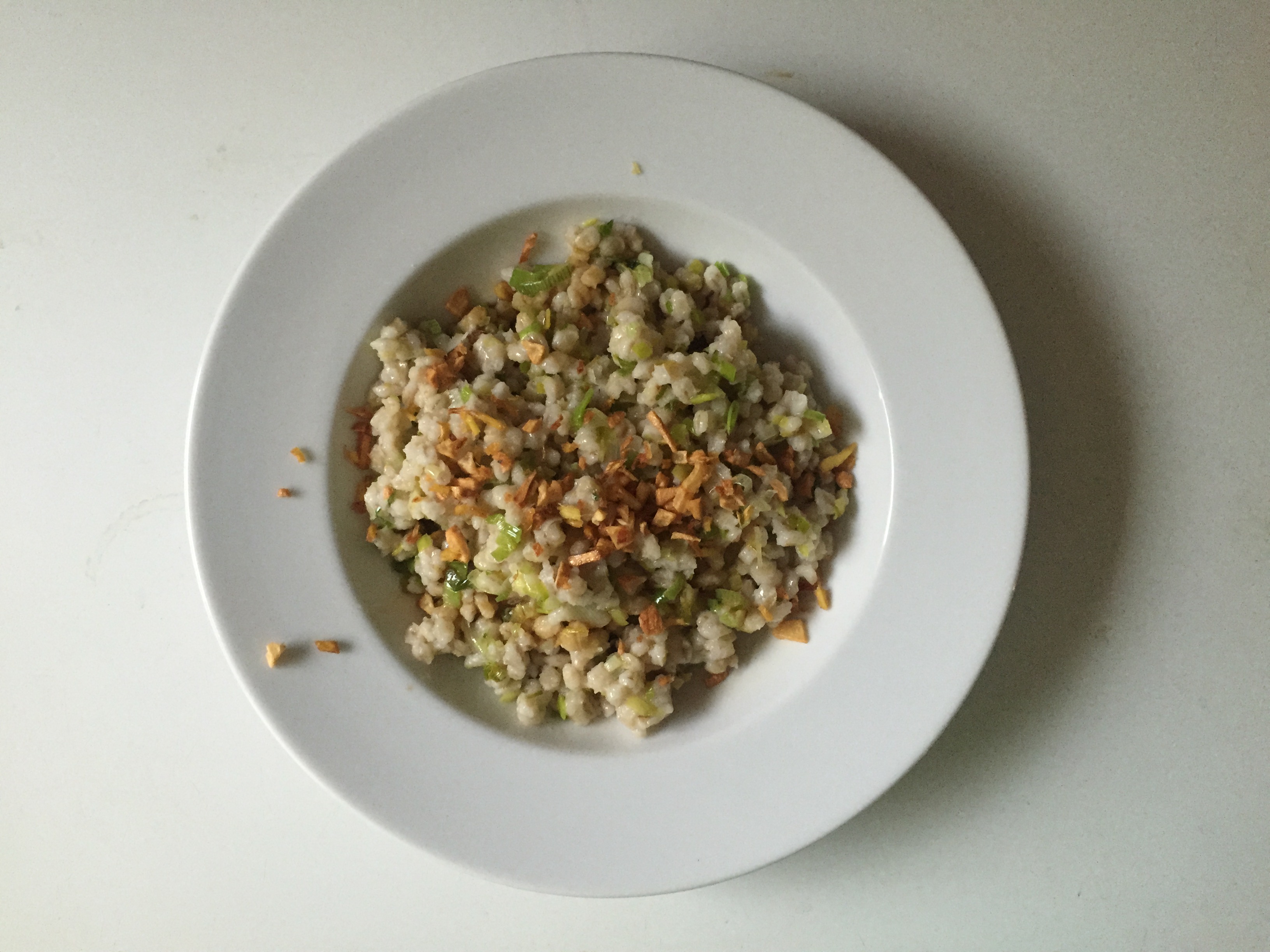 Barley Fried “Rice” with Ginger and Garlic. My very favorite use for leeks is this totally elegant and also super easy fried rice. You’re supposed to top this with a fried egg, which is sublime, of course, but I used every last one we had for Passover.