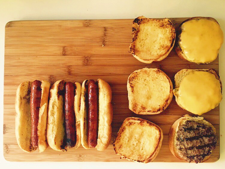 Hot Dogs and Hamburgers. Henry and I made a summer wishlist of all the stuff we hope to do in the next few months. Henry wants to see fireworks and go to a baseball game and go bowling. I want to go camping at Enchanted Rock so we can see the Milky Way and eat s’mores. I asked Andy what he loves about summer and he said eating hot dogs off the grill. He’s so easy. We ate these with my first (successful) batch of fermented dill pickles. I had tried before with a small batch of cucumbers from the garden, and the recipe said that they’d be ready in 3-4 weeks. I let ’em go two before tasting them and they were overdone and too salty. A friend had a huge pile of cucumbers from her garden so she gave them to me and I tried again. This time I tasted the pickles much earlier, and found that they were completely perfect after just about a week of fermenting- they taste like regular pickles except there is a little tiny bit of something effervescent about them, which is such a fun quality for food to have. We also topped our hot dogs with a homemade dill pickle relish from Mrs. Wheelbarrow’s book (so easy!) and everyone loved it. George called it candy and ate spoonful after spoonful of the stuff off his half-hot dog and left the dog and bun untouched.