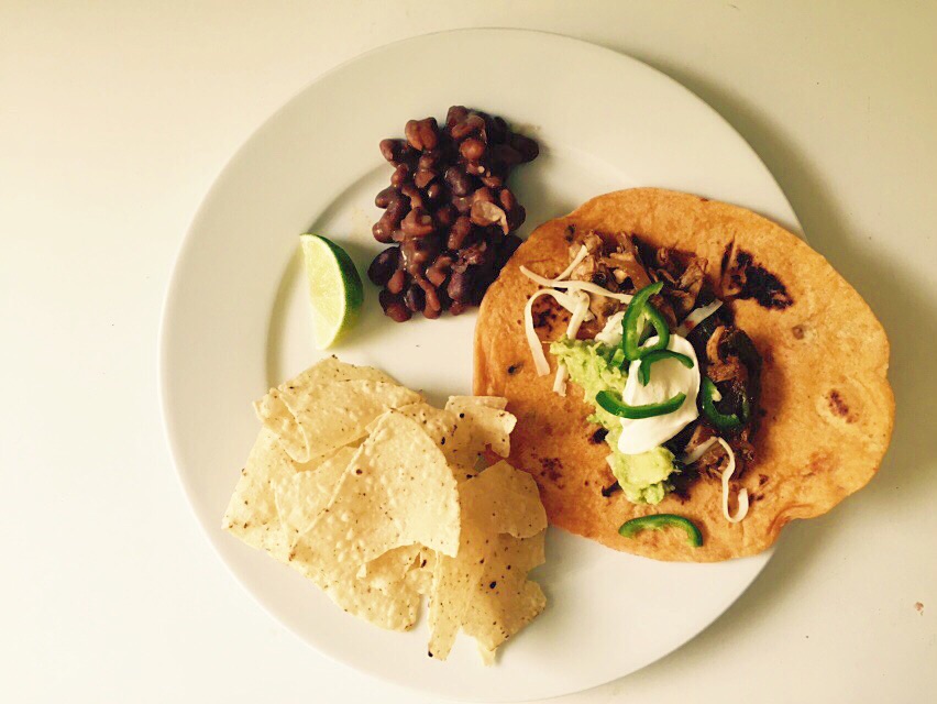 Chicken Fajita-Esque Tacos, Beans. Central Market always runs out of regular ole flour tortillas by late Sunday evening, and you’re left with a choice of all the reject kinds- spelt and multi-grain and other things too horrible to contemplate. I chose these southwestern ones as the least objectionable option, but they were actually pretty great for these fajita-like tacos. I shredded leftover chicken and tossed it into a pan with sliced green bell pepper and onions that I had softened and crisped in a little oil. With the chicken I added a splash of stock, a little cumin and coriander and chile powder and just heated it though. We ate them with pepper jack and guacamole and sliced jalapenos.