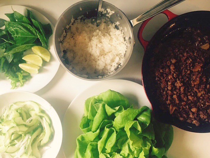 Crispy Thai Pork with Cucumber Salad. I learned about this recipe from Last Night’s Dinner, who has sung it’s praises all over social media. She’s right on all accounts. It’s easy as can be and outrageously good. I was so hungry when I was cooking it that I went a little weak in the knees at the smell of the ground pork sizzling in a hot pan with tons of garlic. If Emeril Live was still a thing that anyone thought about I would quote his “pork fat rules” catchphrase. But it’s not, so forget I said anything about that.