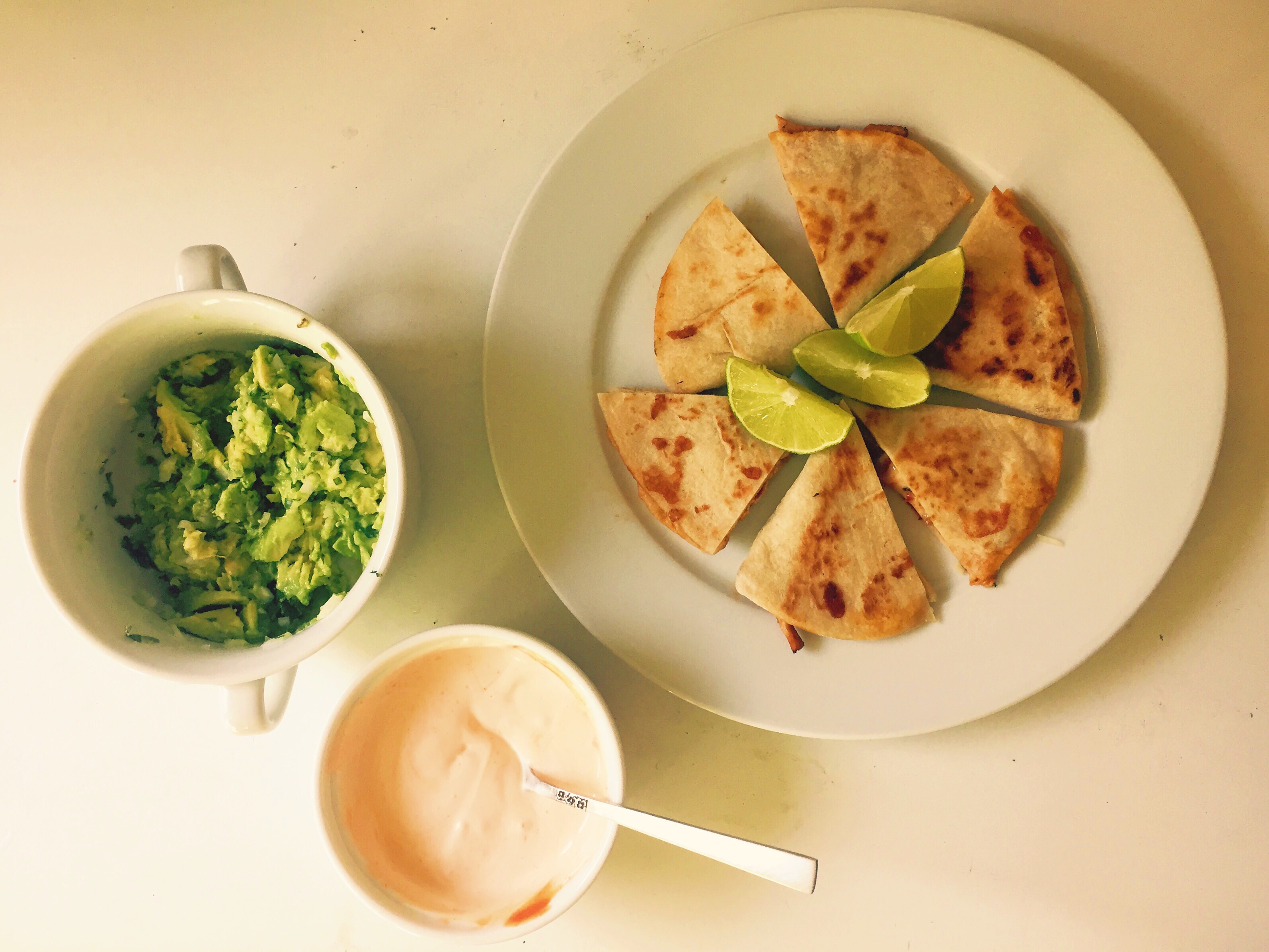 Chicken Tinga Quesadillas a la Taco Bell. Andy dinner comin’ atcha. When we stopped off at Buc-ee’s last week we had debated stopping at Taco Bell instead, which was a hot spot for me and Andy back in the day, but which I haven’t eaten at in several years. Andy’s standard order there is the chicken quesadilla, which he lovingly describes as greasy, creamy, and cheesy. Not stopping there left a plastic sleeve-wrapped quesadilla-sized hole in his heart. The leftover shredded chicken tinga, monterrey jack cheese, and a spicy cream sauce (sour cream mixed with Yellowbird hot sauce) in a griddled tortilla was no Taco Bell, but was close enough to scratch Andy where he itched. My words, not his. I’m sure he’d think those words are gross.