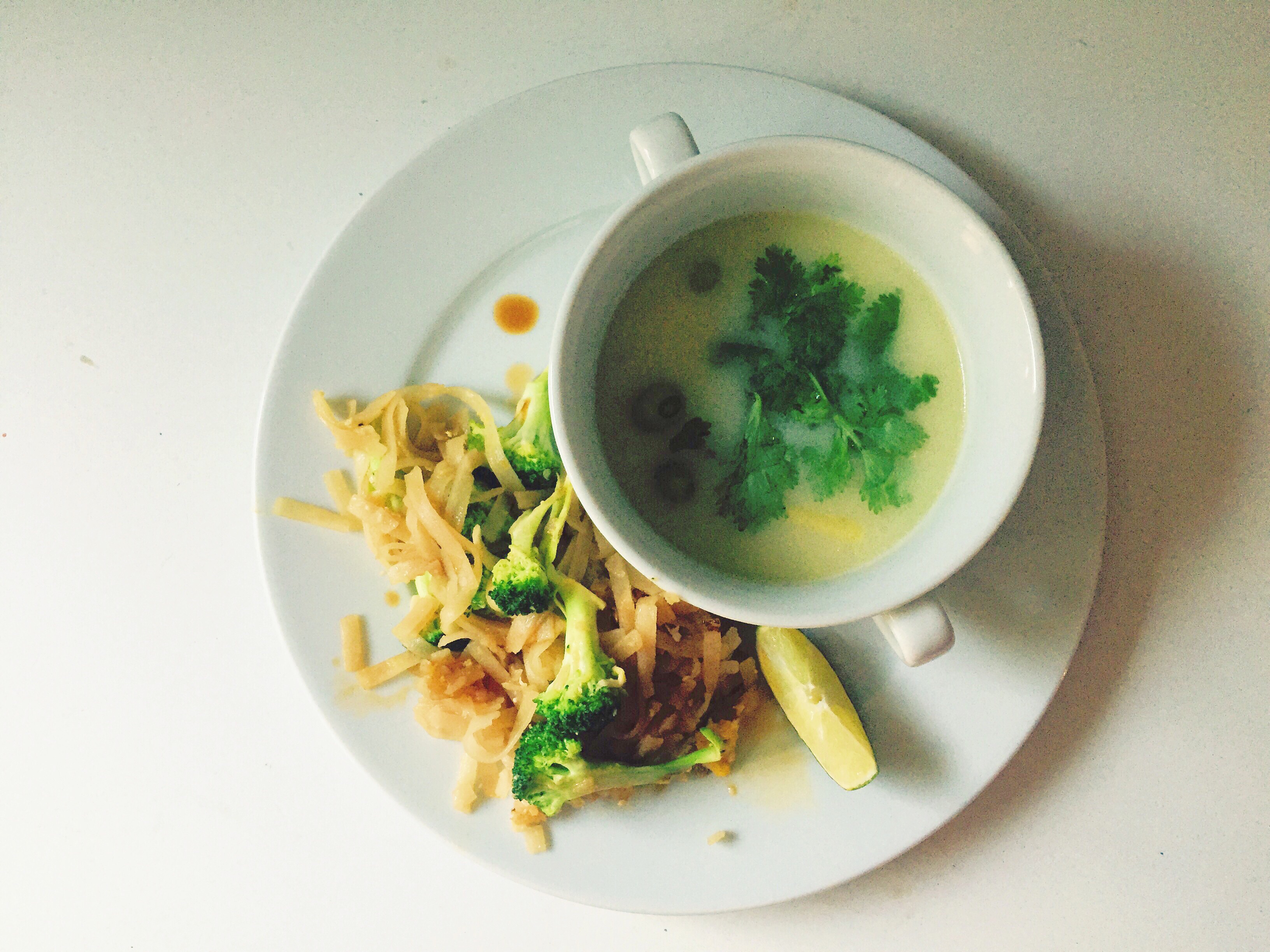 Pad See Ew and Tom Kha. More of that tom kha I’m obsessed with- it takes 8 minutes to make, you guys. I made a mockery of the noodle recipe, which calls for both light soy sauce and dark soy sauce (who needs that, I thought? Light + dark equals the bottle of regular ole tamari that’s already in my fridge). Chinese broccoli? Nope. Chicken/pork/beef/tofu? Nope. Turns out you can’t make all these substitutions without the end result tasting like a watered down version of the real thing. Recipe following 101, y’all. I’m one of those millions of internet assholes who substitutes the life out of a recipe and then isn’t satisfied with the results. Imma try again when I can get my hands on eight types of soy sauce.