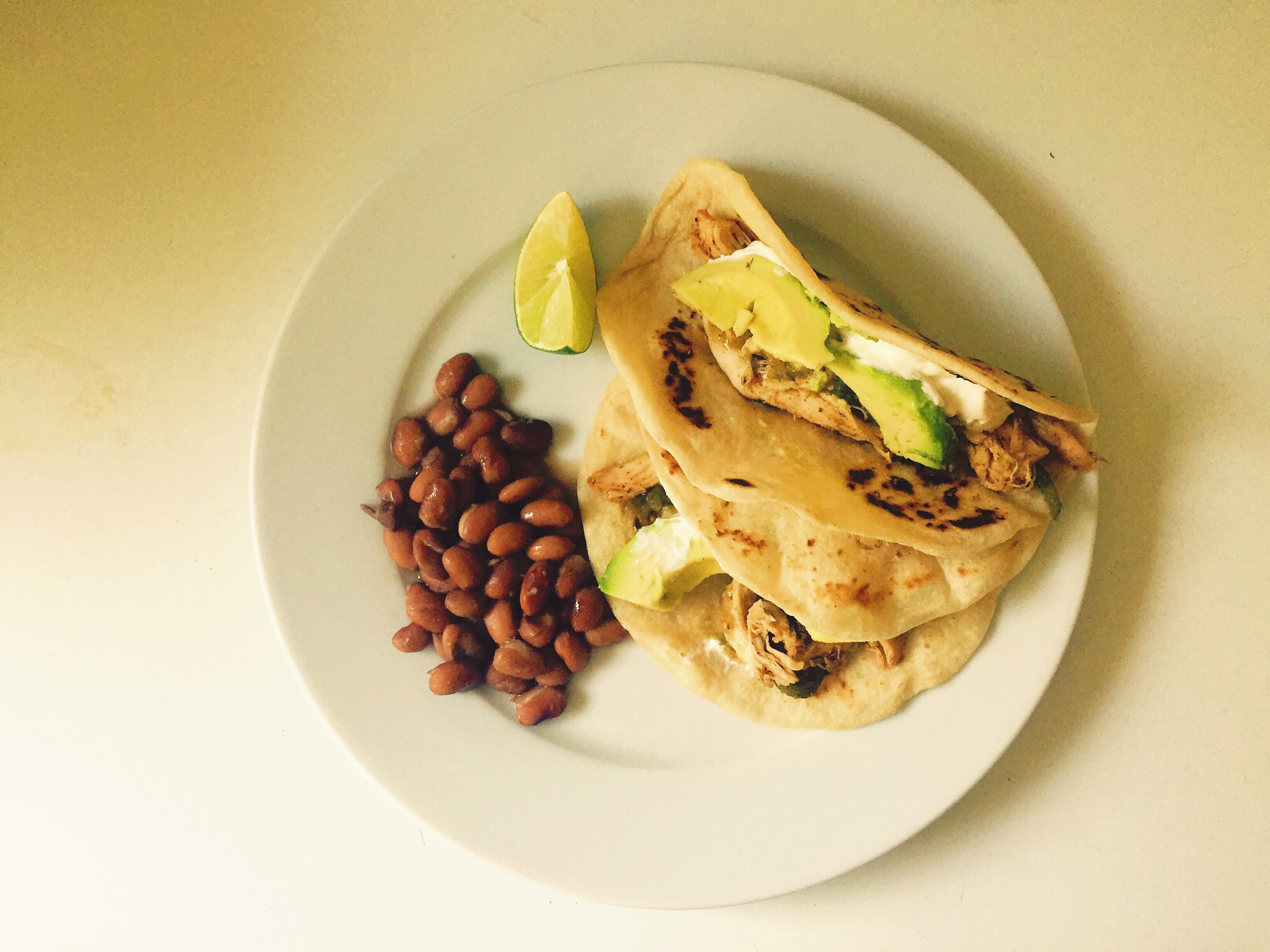 Chicken Tacos, Beans. These are the chicken fajita-esque tacos from a few weeks back. I have nothing inspiring to say about them. I’m typing this on my laptop on the couch and Andy’s sitting next to me watching a video series called Monster Factory, where a couple of dudes create the most horrific looking mutants possible in the character creation section of video games, and then run them around in their video game worlds to get their misshapen heads blown in. It’s mesmerizing and distracting. I’m putting the blame on them for my lack of witty anecdotes for these chicken tacos.