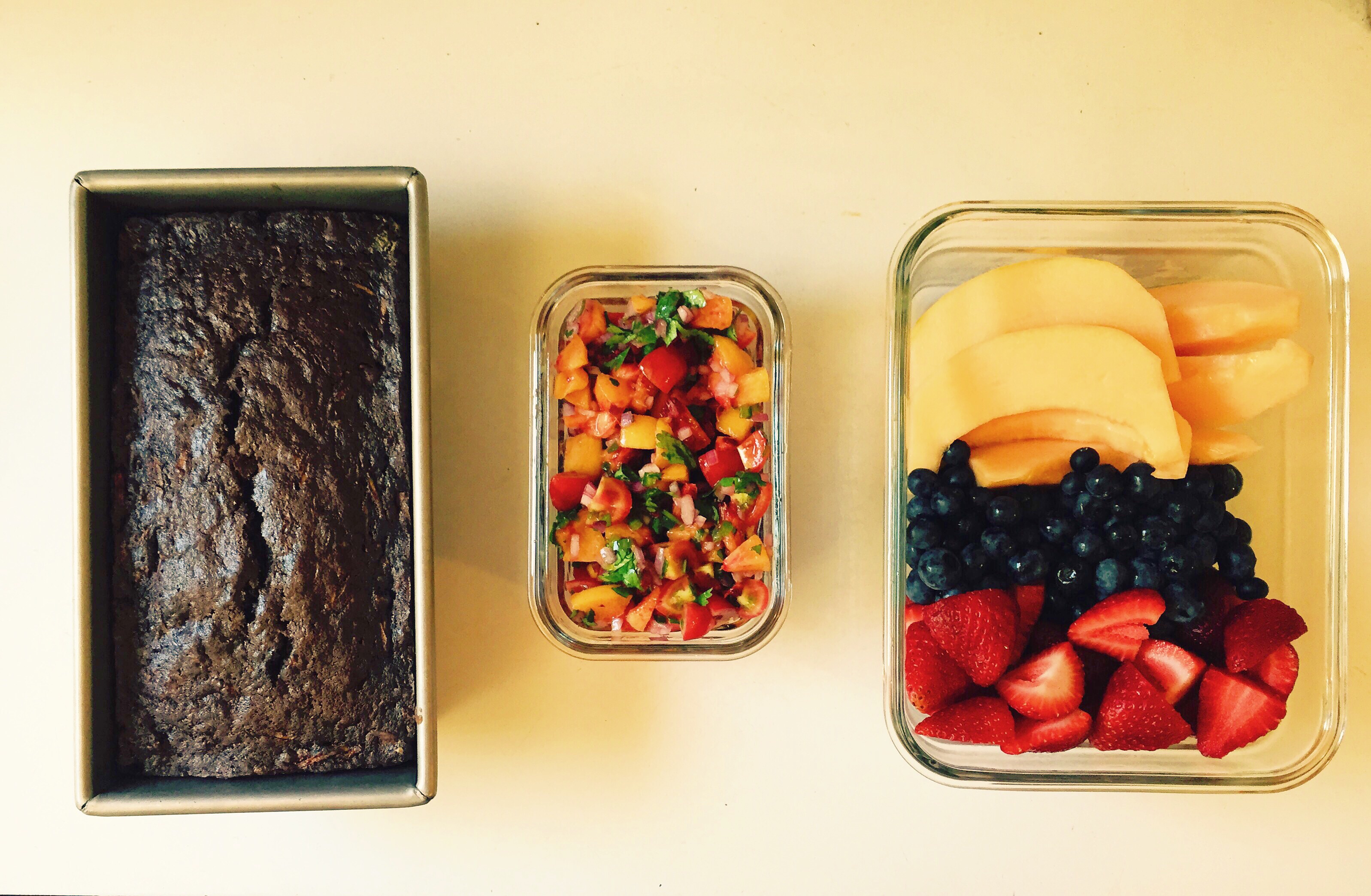 Chocolate Zucchini Bread, Peach Salsa, Fruit. I made this bread again. Aaand once more after that. Eep. It’s too good. And you know why I like it? You don’t have to soften butter or wait for pesky bananas to turn brown to make it. You just melt the butter and toss all the things together and you’re on your way. The peach salsa is diced cherry tomatoes and peaches, mixed with minced jalapeno, red onion, and cilantro, with a squeeze of lime juice and some salt. So good. We ate these things with some thinly sliced ham and cheeses and crackers poolside for a dear friend’s birthday celebration.