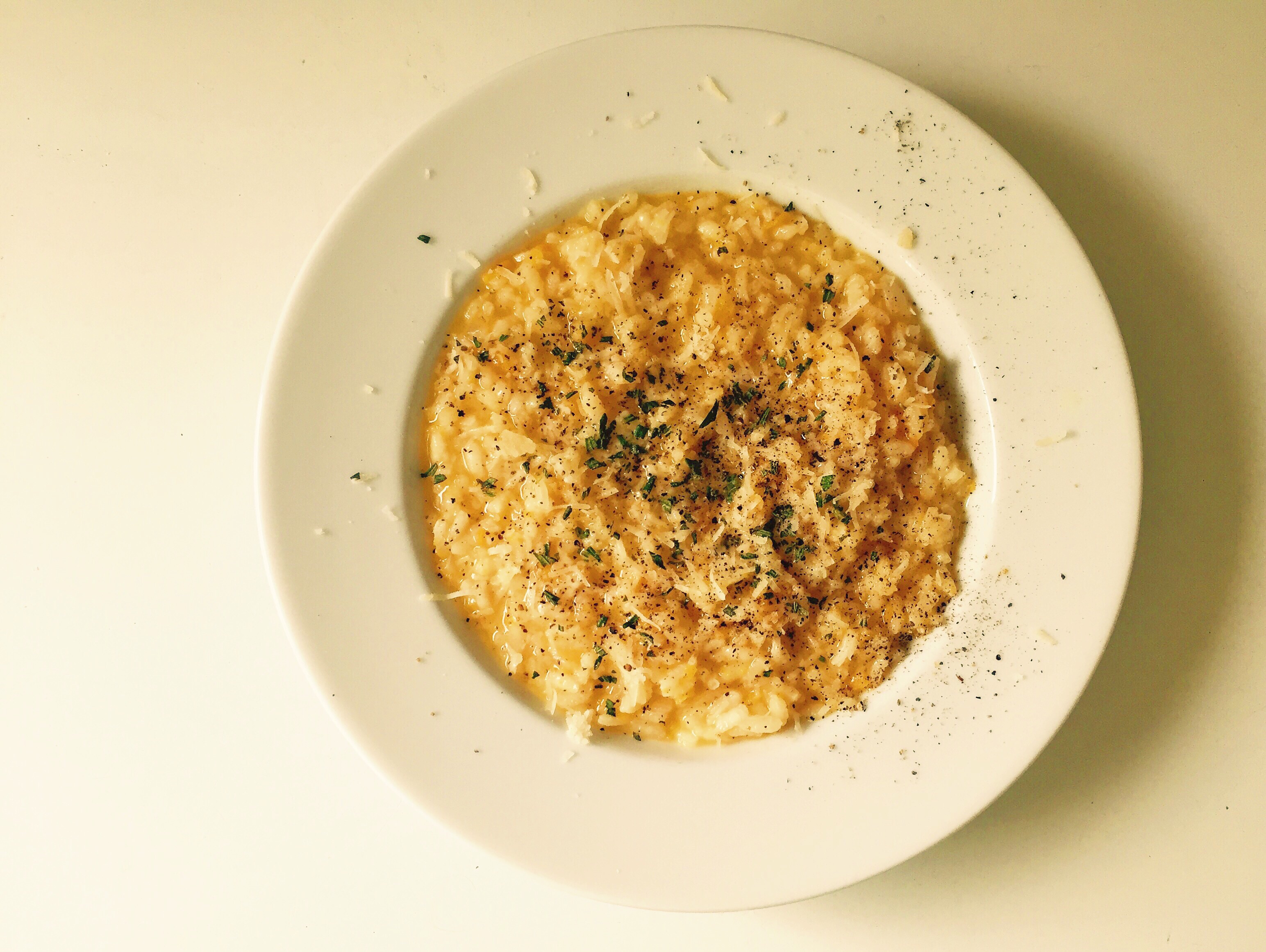 Butternut Risotto with Rosemary and Parmesan. Earlier in the week I asked Henry to help me pick what to make for dinner. I had a list to read to him but he interjected excitedly “do we possibly have the ingredients for risotto?!” It was so dear that I had to add it to this week’s menu, even though it’s 104 degrees outside.