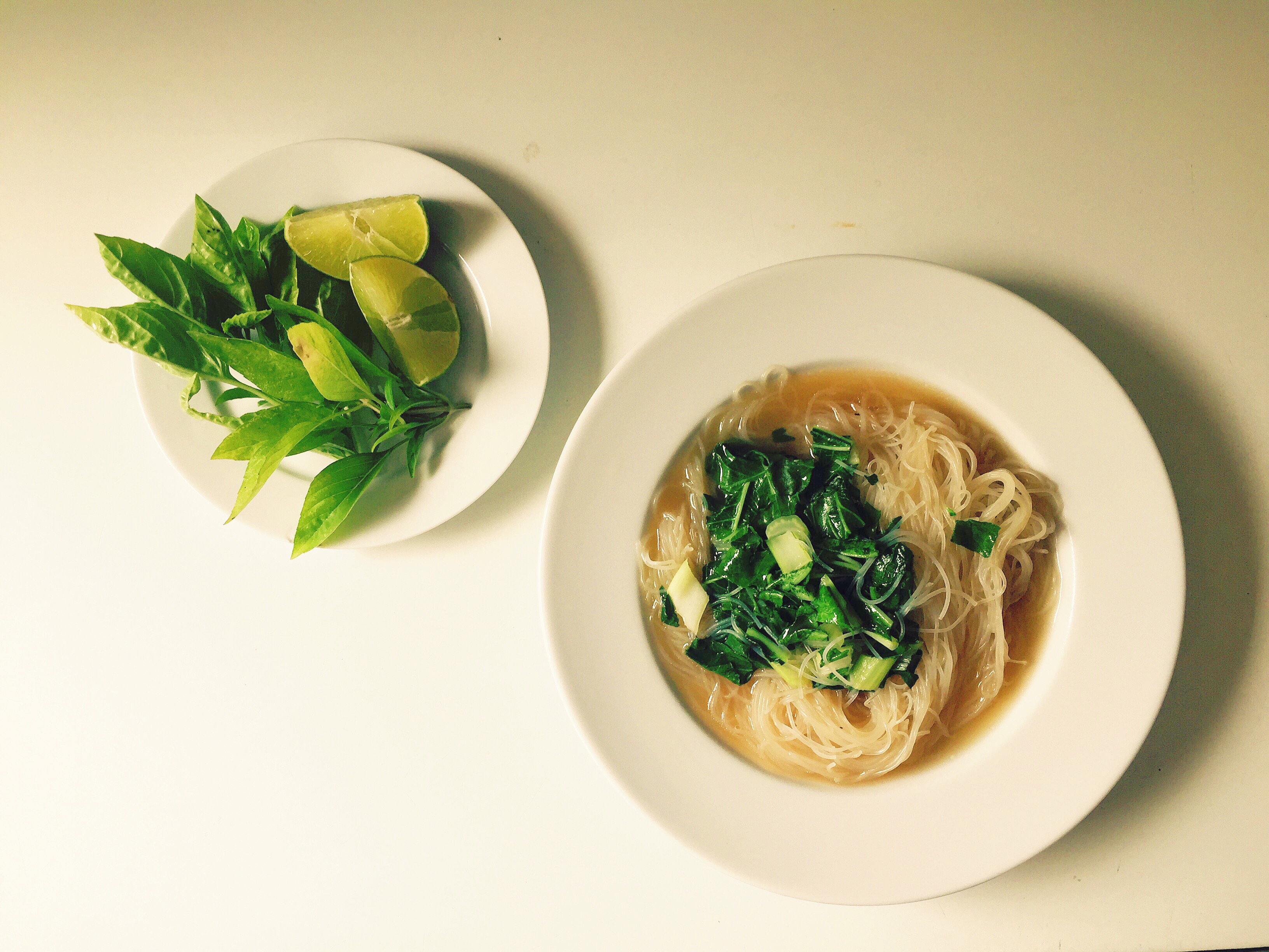 Viet Hapa Pho-ish. My broth was just chicken stock infused with the spices and aromatics called for in the recipe, but was still so satisfying. The bok choy was so bitter, but I ate it dutifully anyway, because I am very healthy.