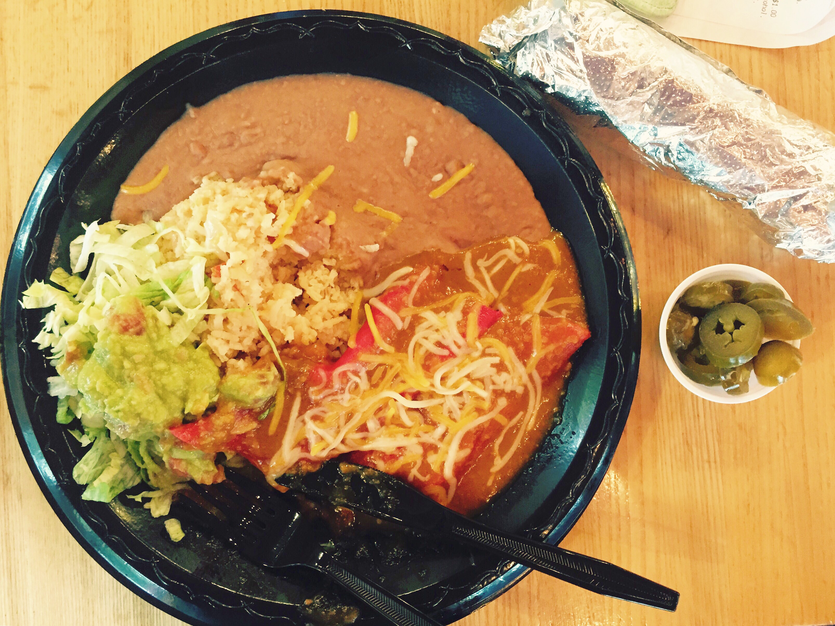 I’ve only got a few dinners to share with you this week, and one of them is just a picture of my partially-eaten meal from Taco Cabana, but here we go!
