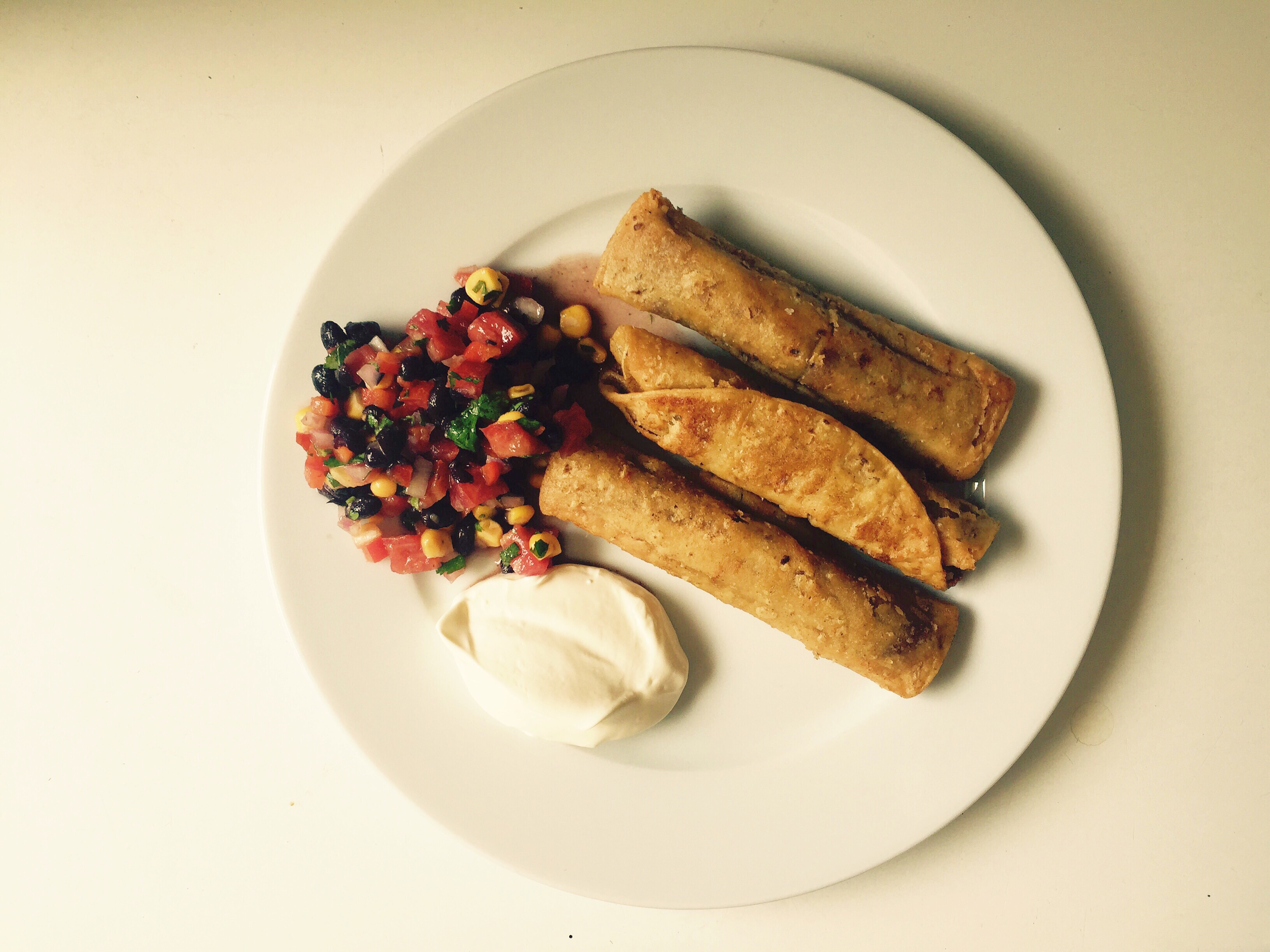 Black Bean and Cheese Taquitos. Pour a 1/2 inch of oil into a cast iron skillet and heat it over medium heat. When the oil is hot, drop a corn tortilla in, quickly flip it over with tongs, and take it out of the oil and put it on a plate. Repeat with as many tortillas as you want, stacking the softened fried ones on top of each other. Now that the tortillas are softened you can put a thin line of whatever you want in the center (I did a spoonful of black beans and a sprinkle of grated chihuahua cheese) and roll them up. Place them seam-side down back into the oil, and fry them, flipping once, until they’re completely brown and crispy.