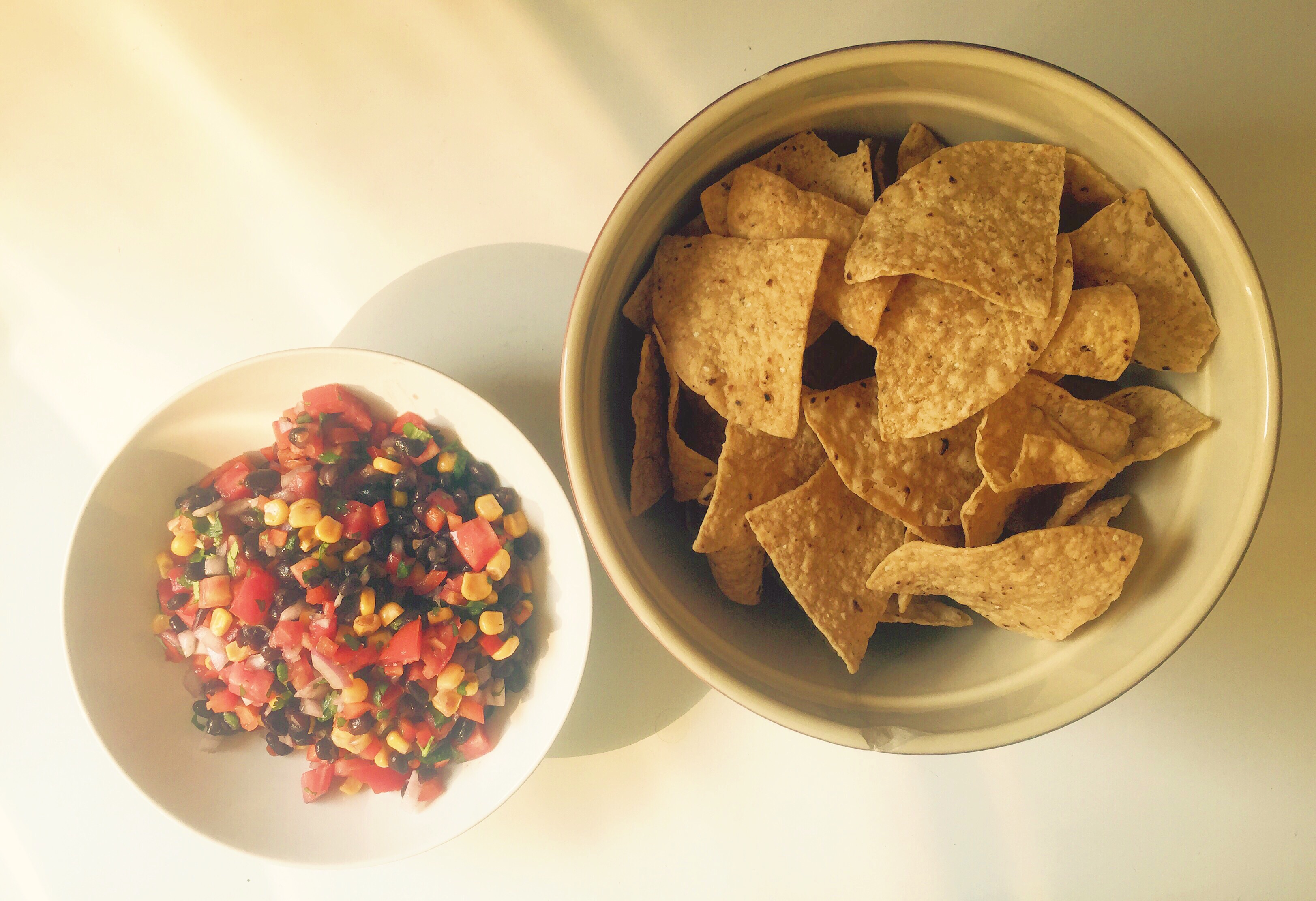 Black Bean and Corn Salsa. It’s happened, you guys. I’ve linked to a Rachael Ray recipe. But I don’t feel too bad about it because this definitely isn’t an original recipe of hers- my mom’s been making the stuff since I was a kid. She used a can of black beans and a can of Mexi-corn (that charming little can that has flecks of green and red pepper among the kernals) and maybe jicama? And lime and cilantro and red onion, I think. Anyway, you don’t need a recipe for this. You just put all these things together with a lot of lime juice and a splash of oil (otherwise it seems too dry and chalky to me). I added a big tomato because I got a very pretty one at Wheatsville and I liked it that way.