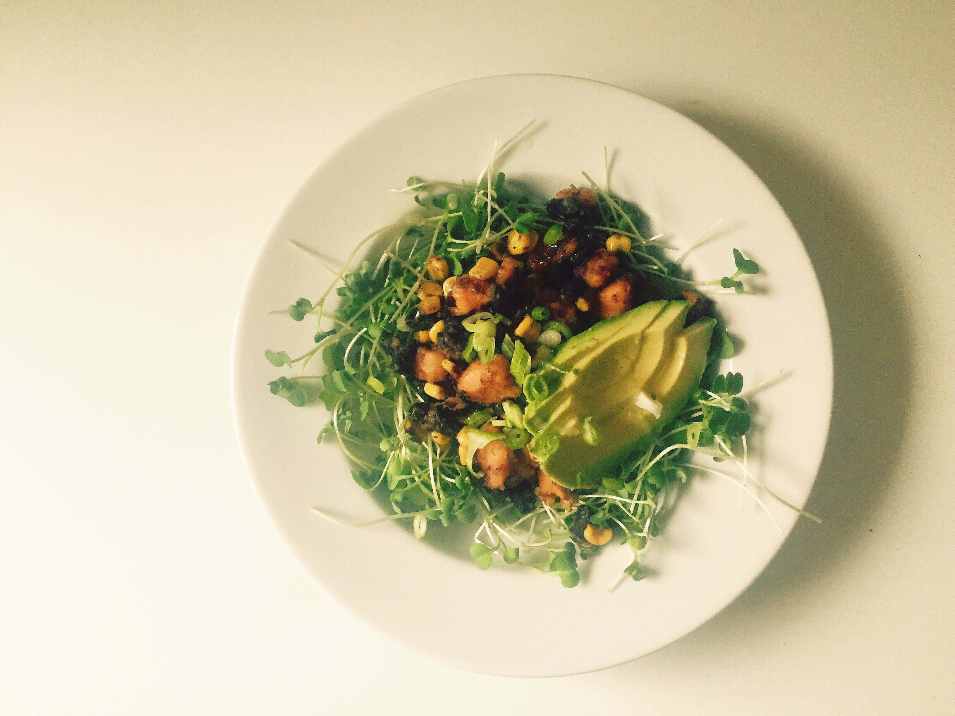 Charred Fresh Corn Cakes. This is the most Emeril-looking plate I’ve ever assembled. Doesn’t it look super ’90s? I am so bad at plating. The corn cakes are lovely though, and delicious with avocado and heaps upon heaps of sour cream.