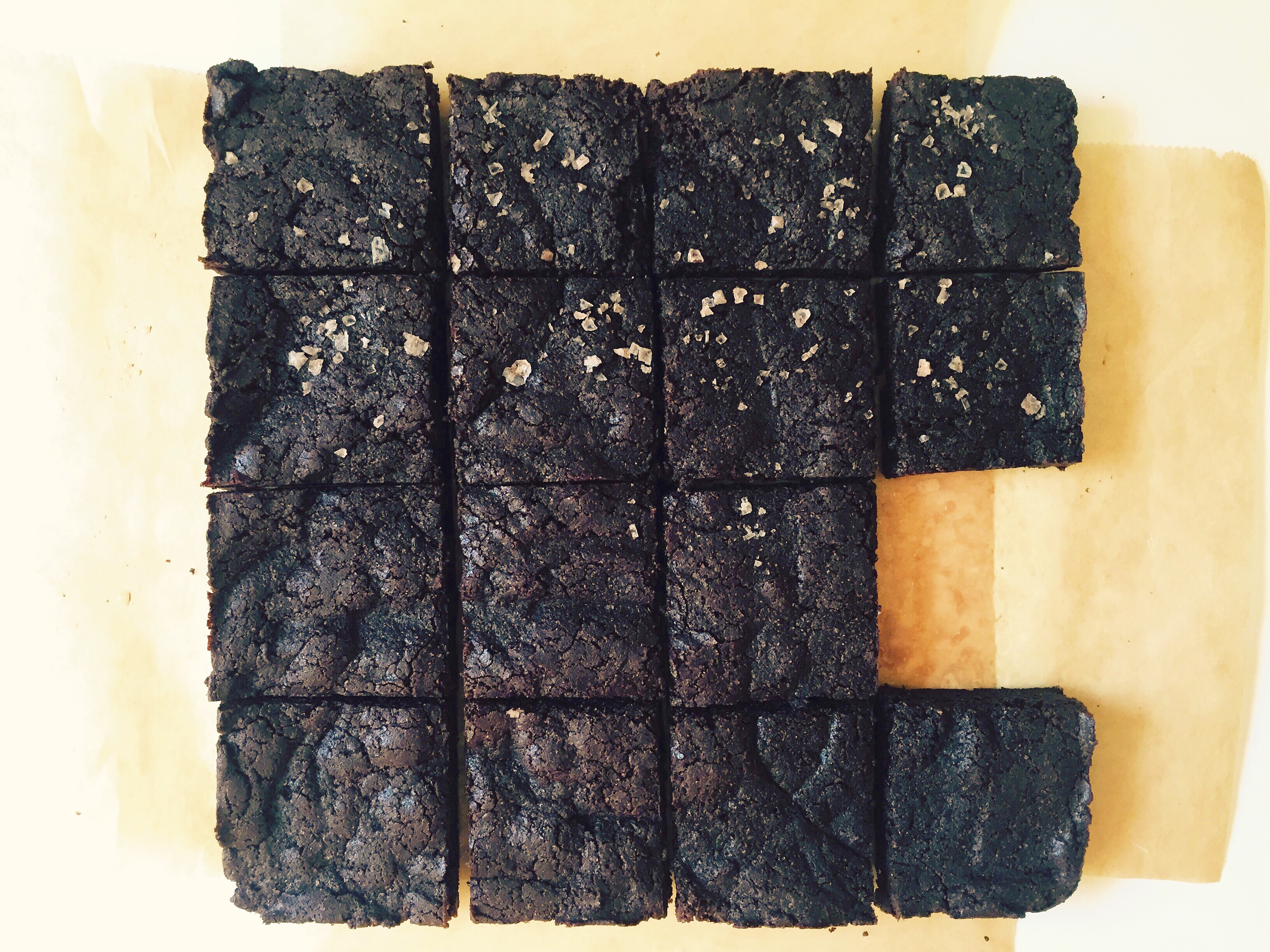 Gluten Free and Dairy Free Brownies with Sea Salt. I’ve made this recipe with gluten free flour before just by subbing Cup4Cup for the all purpose. It’s the only trick up my gluten free-sleeve. Anyway, it works out just great. But I wanted to try to make them dairy free too by replacing the butter with coconut oil. After mixing up the batter I was prepared to call the attempt an unmitigated disaster. The batter seemed to thoroughly reject the coconut oil. I wrestled a thick, modeling clay-like mass of dough into the pan as coconut oil wept from it like a slick clear discharge from an open wound. Baking only exacerbated the problem. When I checked on the brownies at the 20 minute mark they were submerged under a layer of oil. Since I had nothing to lose, I decided to keep baking them to see what would happen. It took probably another 15 minutes, but the brownies did reabsorb the oil and damn if they aren’t actually pretty good! The longer time in the oven made the edges a little too hard, but I liked em fine anyway. So, you know. If you have to eat gluten and dairy free brownies these are a thing that could work for you.