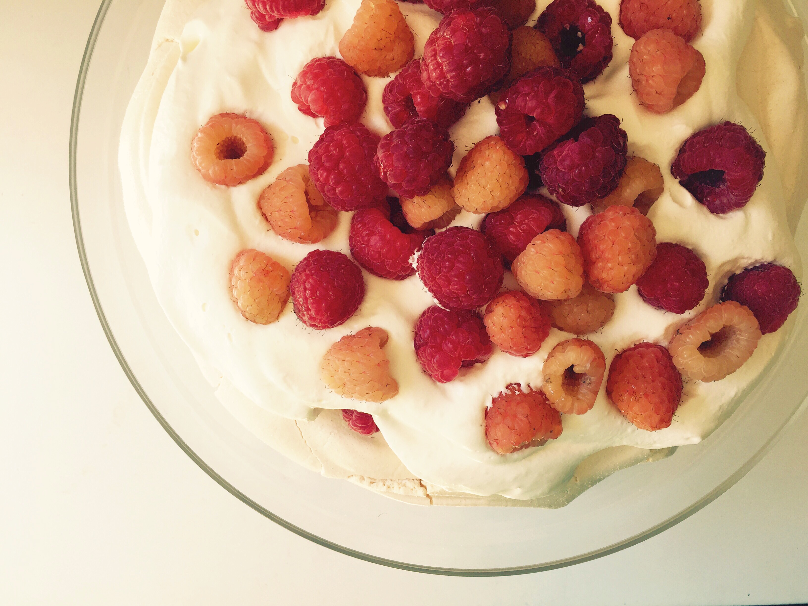 Raspberry Pavlova. My birthday dessert! Isn’t it lovely? A pavlova is just a giant meringue, crackly on the outside and marshmallow-y in the middle. When you top it with whipped cream and berries you’ll have one of the all-time best combinations of flavors and textures. Another fine quality in pavlovas is that they don’t last at all. You have to eat them all up, in one sitting, lest they turn to mush. So we all had seconds and I had thirds and didn’t regret a single morsel of it. I’ve got so much love and gratitude in my heart for my friends and family- thank you for making my birthday such a very happy occasion ❤ See you next week!