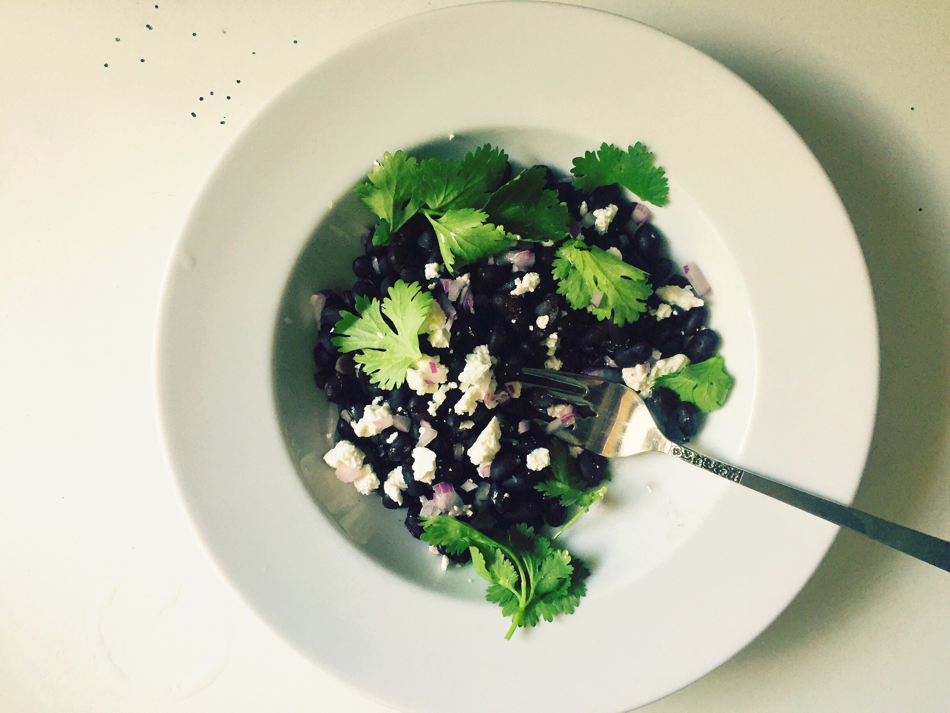 Black Beans with Feta, Red Onion, Cilantro, and Lime. Ever since I read this article, which, fair warning, spends a not-insignificant amount of time talking about farting, I haven’t soaked my black beans before cooking. Not because of benefits vis-a-vis farts, but because they taste better that way. These taste so good in fact, that my children, who normally prefer to alternate lunches of plain buttered noodles and squeeze-y yogurts plus handfuls of gummies, both ate big bowl fulls, with very little adornment. I really loved eating this too, and felt the swell of pride I always do when I manage to eat a meal without a huge pile of bread included. Also, I think that’s glitter that’s scattered in the top left corner of the picture, but who can say? Full disclosure: the kids had second lunches an hour later of plain buttered noodles.