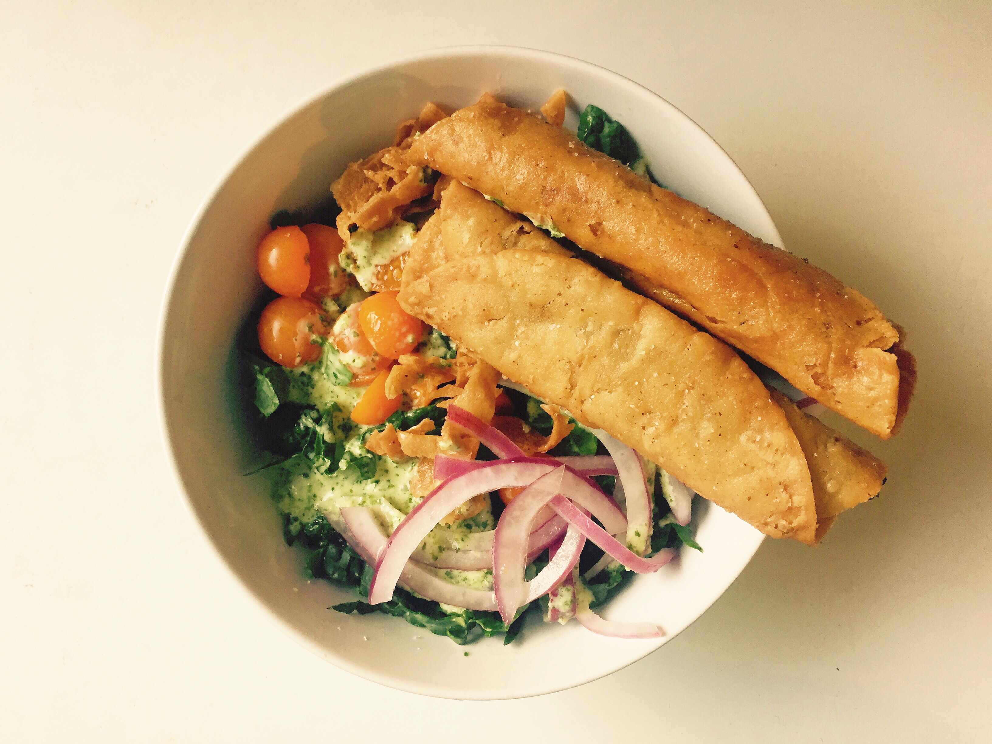 Kale Salad with Cilantro Lime Dressing and Black Bean Flautas. On Tuesdays we go to a place called My Gym in the afternoon for Henry’s parkour class. And oh does he love it! The guy leading the class is called Coach Kurt and Henry idolizes him- last week Henry wore his new Jake and the Neverland Pirates shirt and on the way to class he said “I wonder if the Coach with like my new shirt?” and I thought (didn’t say), um, there’s no way he’s going to notice that. But then we got there and Coach Kurt said how much he liked Henry’s shirt as soon as he saw him! He’s really good with kids. Anyway, while Henry takes the class, George and I go on the other side of the building to the active play room, which has all the same equipment (bars and mats and trampolines, and things to climb) as the class room, but also has a dozen aggressive children fighting over it, while the parents recline against the walls and dick around on their cell phones. I love kids. At least, I like to think I love kids. But every week at this place there’s one or two that I can’t stand. This week it was a skinny blonde girl, with a Ramona Quimby haircut. She was 5 or 6. She ended up on the bars at the same time as George and claimed them for herself, so George moved over to a rainbow ladder thing. She followed him over there and climbed up at the same time as him. He tried to wave her away and the little punk dug her nails into his hand! I asked her to please keep her hands off of him and we moved over to the ball pit, where George played while I idly fixed a yellow ball that had been crushed. That girl must have been watching me because she came over as soon as I had tossed the yellow ball back into the pit, grabbed it, and held it up to my face and re-crushed it while laughing maniacally. To sum up, I think I have a new nemesis, and she’s six.