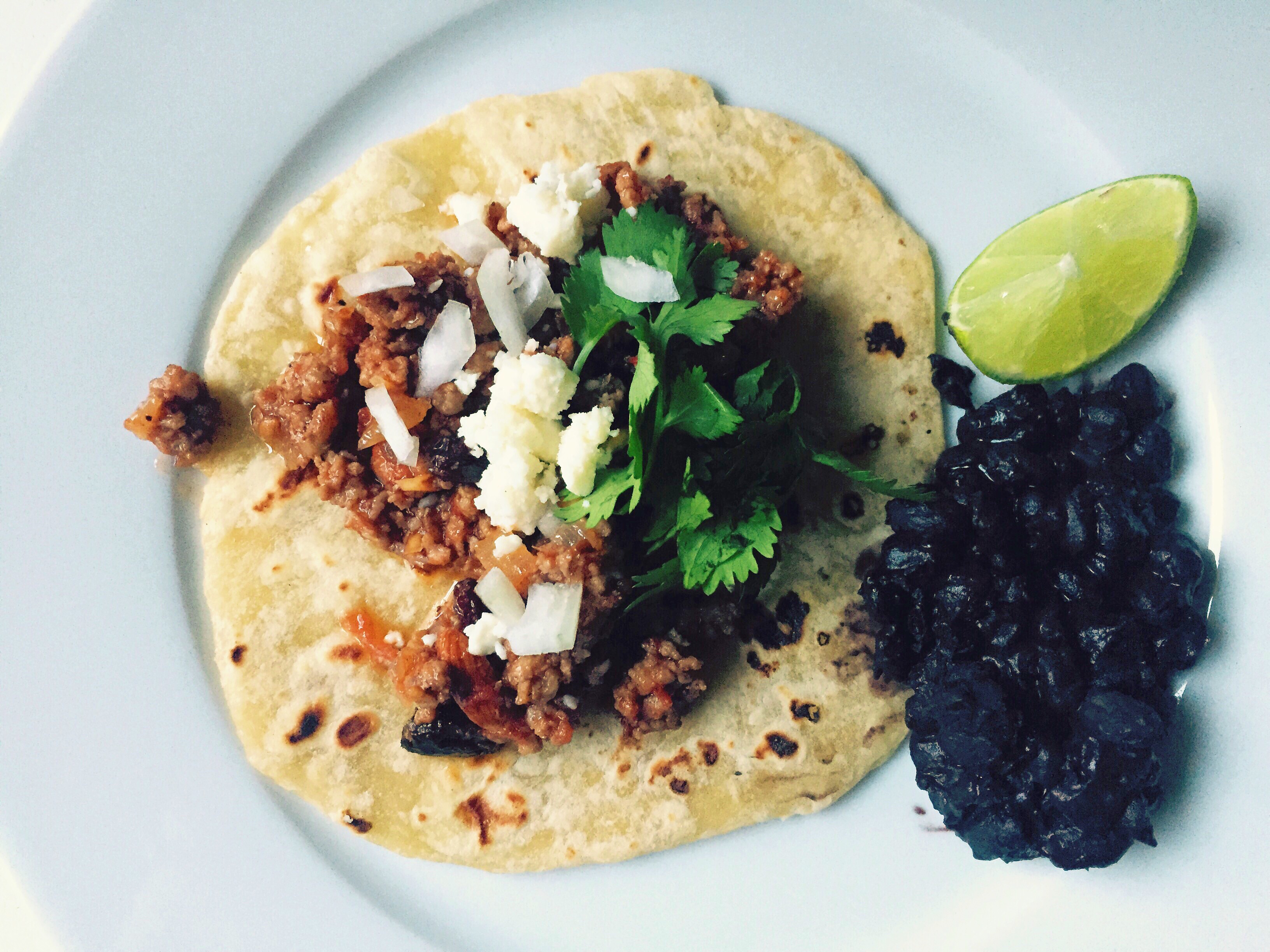 Picadillo Oaxaqueno. I bought a package of ground pork from the farmers market for no reason. I spent all week searching my favorite food sites for ground pork recipes and didn’t see anything I wanted to make, so I said to hell with it and made another ground pork taco dinner. This one is from Rick Bayless’ Authentic Mexican cookbook, and was good but too vinegar-y. For my money the coconut lime pork from last week was way better.