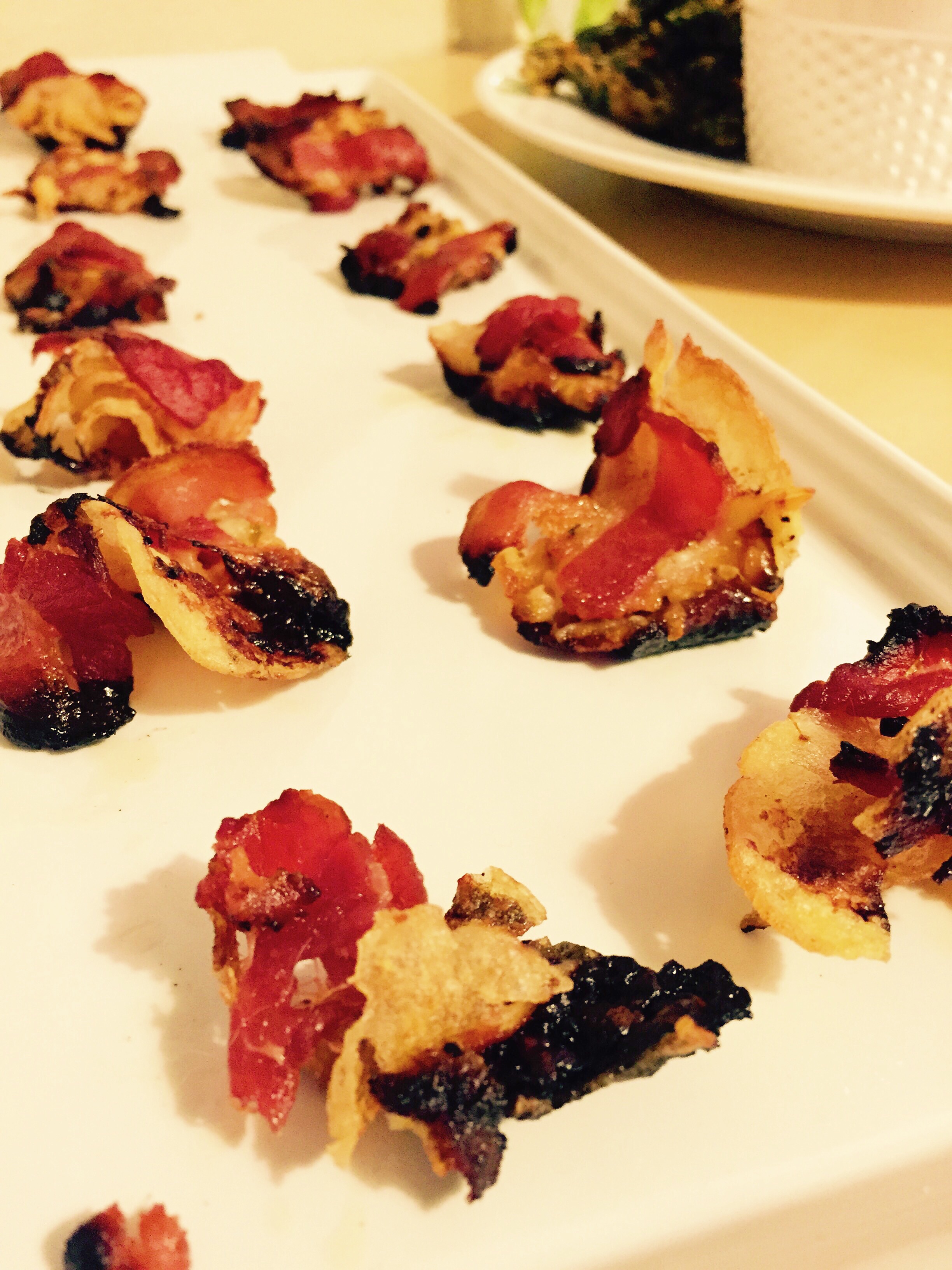 You will never in your life meet someone who does better things with bacon than my sister. This is her latest improvisation: bacon, cheddar, potato chip, strawberry-jalapeno jam. They were all gone within seconds. A second batch met the same fate.