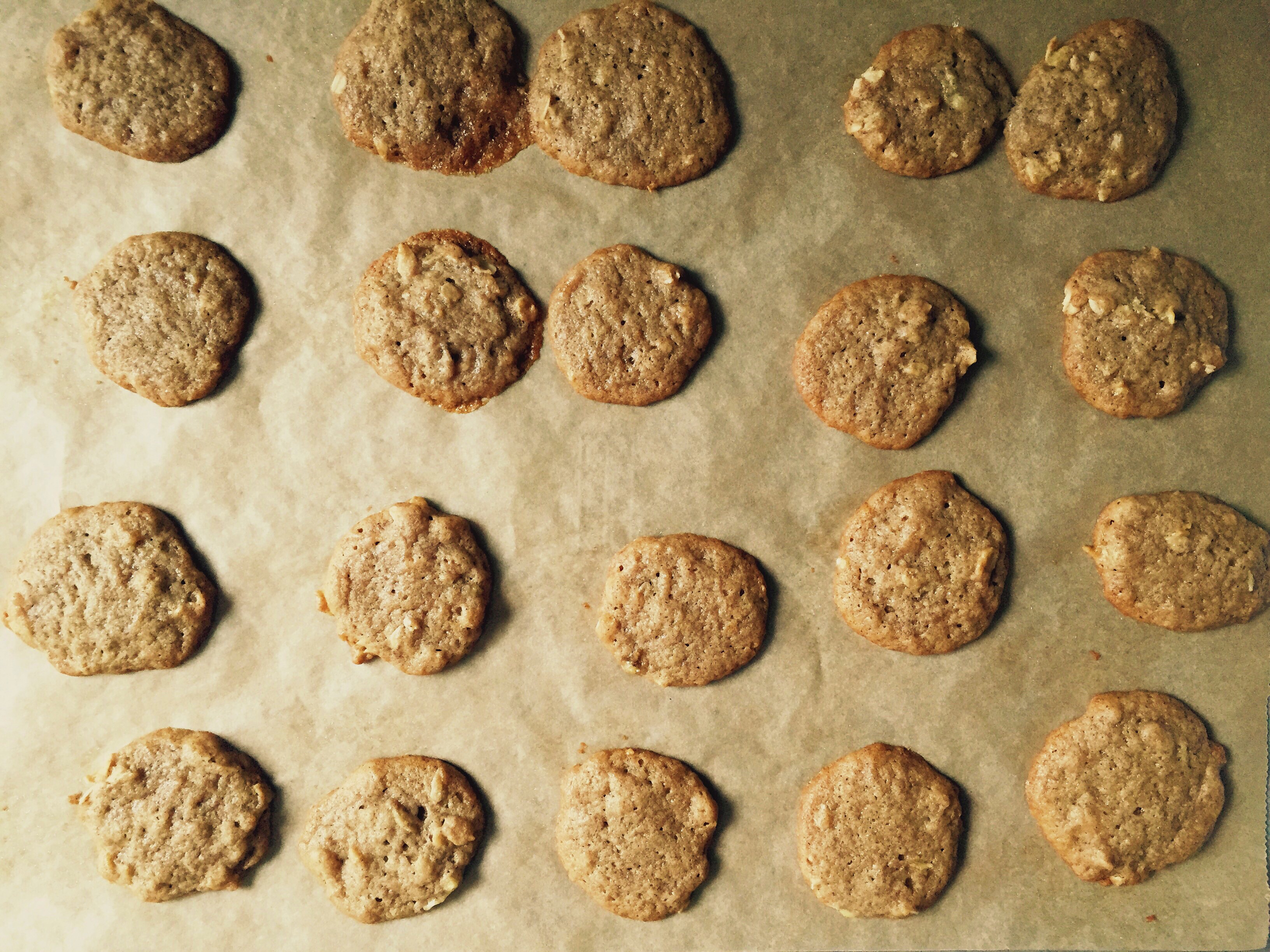 Lil’s Favorite One Bite Banana Cookies. George doesn’t eat much of anything, but occasionally he’ll climb up on a stool next to the counter, peer into the fruit bowl, and if we’ve got one, he’ll ask for a banana. He calls them ‘namas’ which I imagine is a fact nobody but me will care about, but I just love hearing him say that. Sometimes I’ll peel a banana for him and he’ll just shake his head sadly when I offer it to him. Sometimes he’ll take one bite and abandon it. And sometimes he eats the whole thing. On this occasion, he took one bite and left it. I had exactly one cup of flour leftover after making calzones, and well more than the 1/4 cup of mashed banana I needed for the recipe, so I made these cookies. I didn’t have coconut and replaced it with rolled oats. Everybody loves these cookies. The first time I made them Andy and I stood in front of the stove and ate the whole pan-full. Use the curry powder if you’re feeling adventurous or replace it with cinnamon. Either way, these won’t last long.