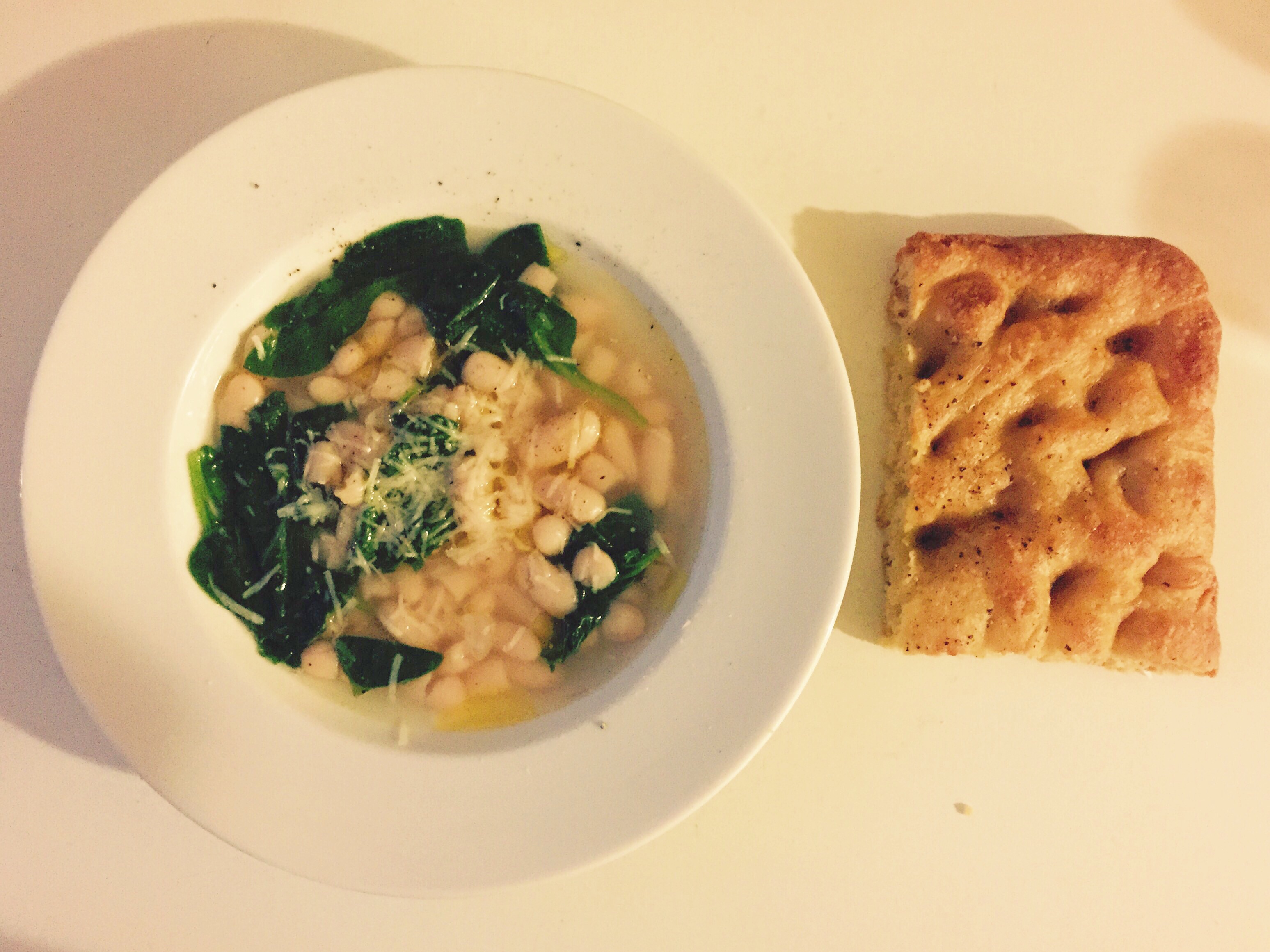 White Bean Stew, with Still More Focaccia. You guys, what am I going to do when daylight saving time ends? All my pictures are going to look like this one. Washed out and sad under the crappy, dead bug-filled kitchen light. The sadness of this picture is an appropriate representation of a rough day. George woke up furious about something, we know not what. Straight out of bed he insisted that Andy put on his flip flops, which he wears more as a costume piece than as actual footwear, and which have little straps on the back to keep them in place. He was screaming demands the whole time and somehow slipped into a hysterical-upset because one of the straps had slipped off his ankle. Andy and I both tried to fix it, but George didn’t want us to. He just wanted to scream “LOOK AT MY OTHER SANDAL, EVERYONE” over and over through so many tears. Poor Henry burst into tears too and Andy had to leave for work with everyone yelling and crying and sad. We put our pieces back together and left to meet Helen and Phinnie at the library for story time, something Henry had absolutely despised in the past, but acquiesced to try again for George’s sake, who had never been. The librarian had prepared a bilingual program about underpants and the kids were both delighted. She read great stories and then the kids got to design their own paper underpants and it was so much fun. When the program was over we went across the hall to the main building to check out books and to play with the library’s collection of magnatiles. Henry made a beautiful magnatile car, but it eventually collapsed under its own weight which devastated him and brought on a meltdown of epic proportions. It took time, but we all recovered from that setback too, and went on to have a good time at the playground and a fun lunch at Helen’s house. But then George fell asleep on the way home and slept forever, which meant I was late starting these beans for dinner, and then, in spite of soaking for over 18 hours they took two hours to cook so we ate well past dark and everything is so hard. The kids both loved this though, so that was a nice thing.