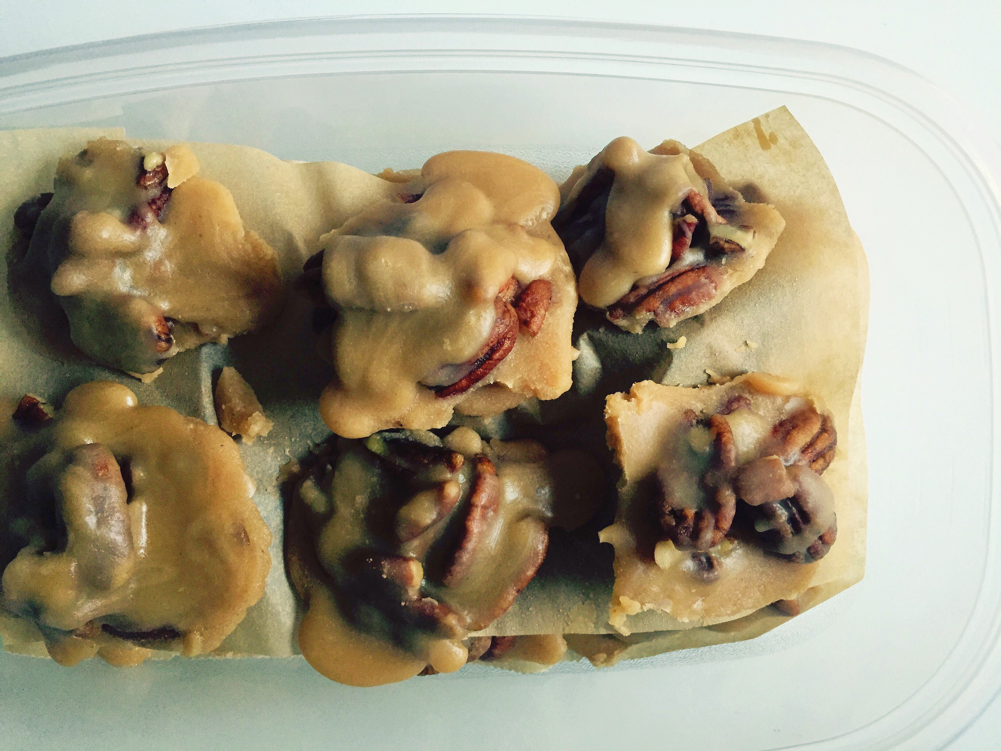 Pecan Pralines. There was a hunk of the very last praline sitting on the counter next to me when I sat down to write this post. I think Henry was the one who chewed on it and left it there, but it could have been anyone really, as I served the leftovers at our unschooler gathering today. I ate a few bites off of it anyway. I keep picking up the small nub that remains and absent-mindedly bringing it to my mouth, but then my brain kicks in and I put it back down again. They are just too sweet for one to want to finish eating the whole thing.