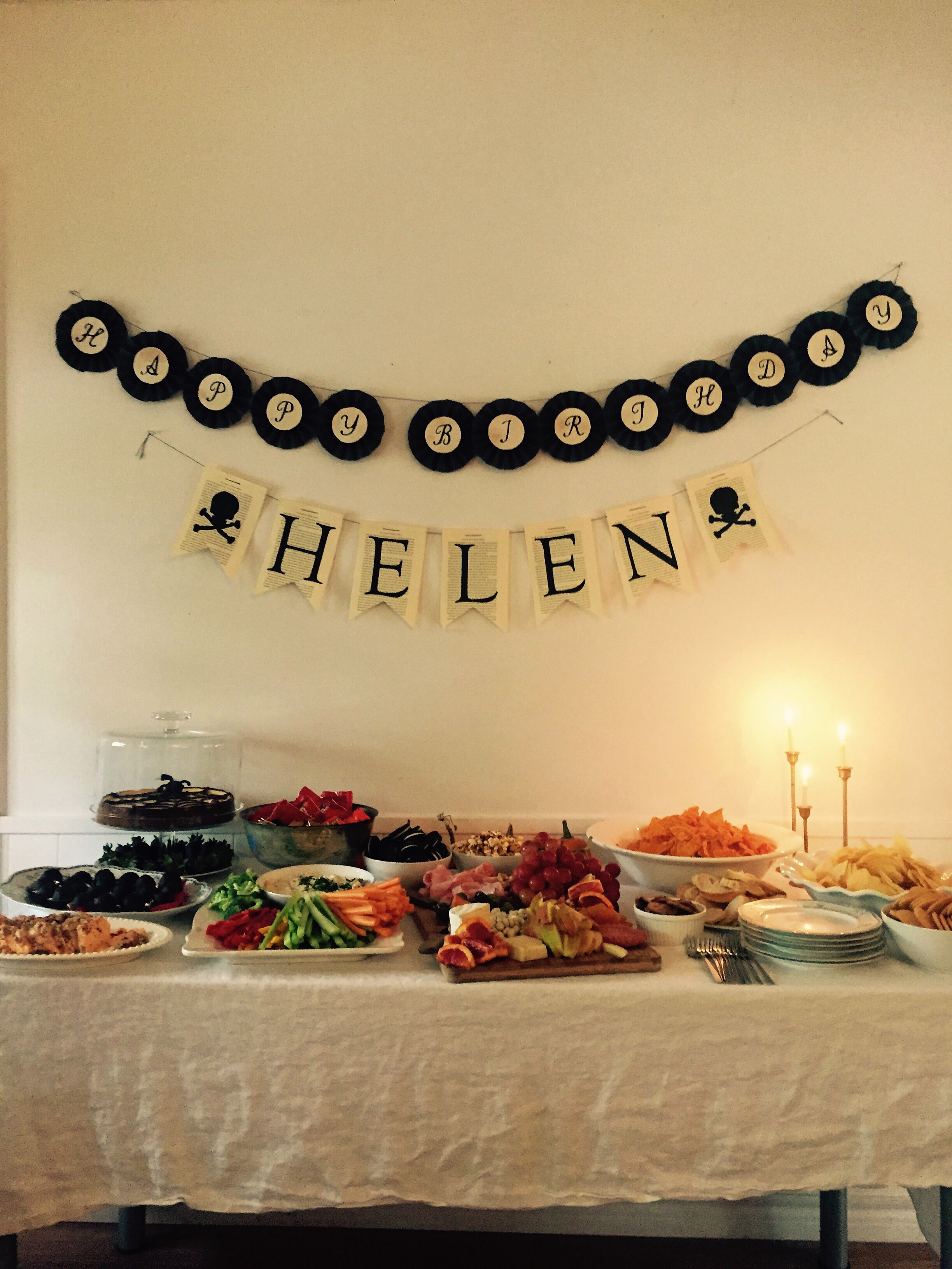 For my birthday last month, my sister threw me a craft party with all manner of tasty snacks. We’ve been having these craft parties on a semi-regular basis, and have come to view them as the best possible use of child-free party time. You get to bring whatever craft you want to work on for yourself and eat and talk to friends while you do it. We all loved it so much we decided to celebrate Helen’s birthday the same way, so here is my spin on craft party-snacks!