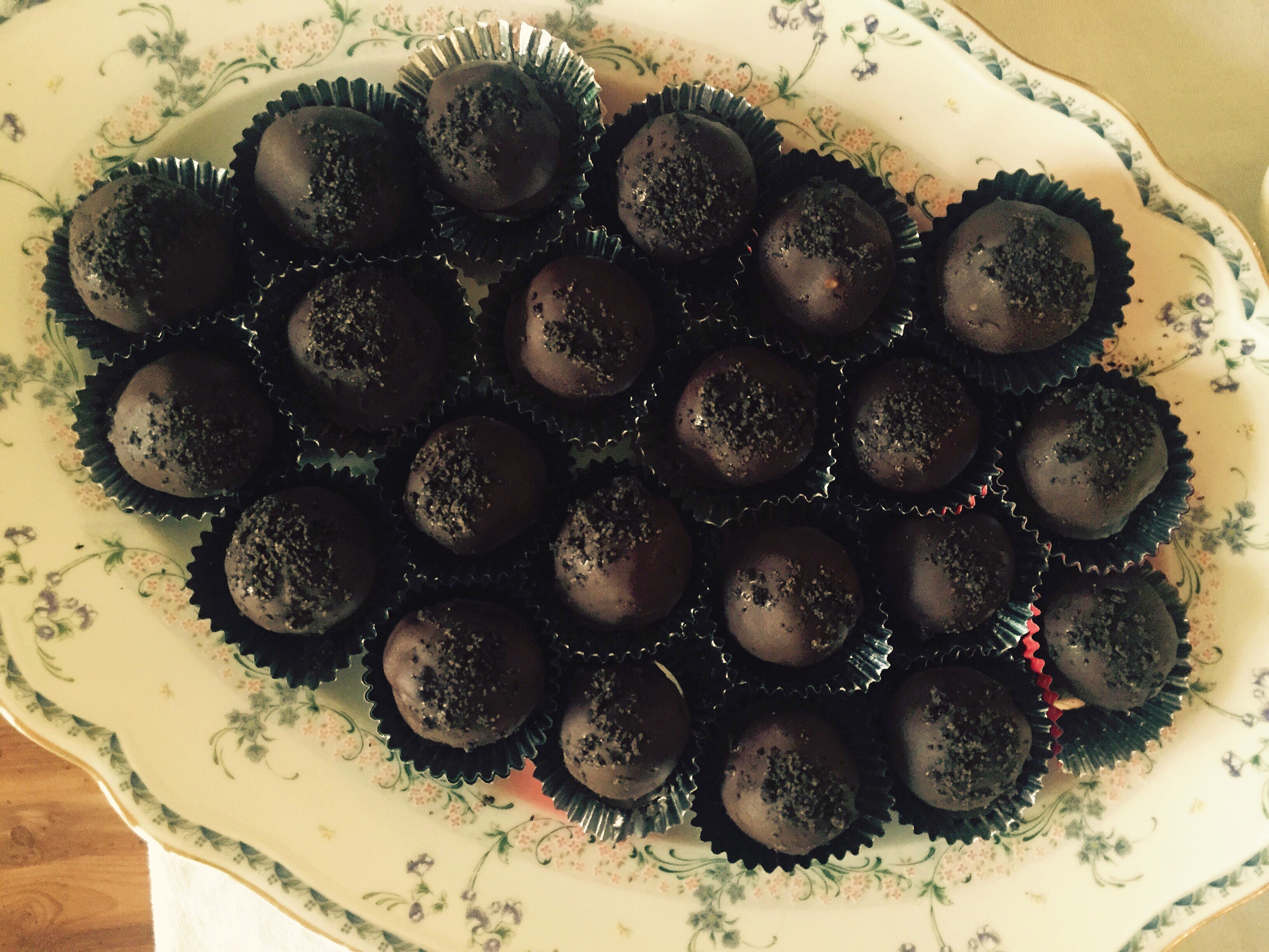 Oreo Truffles. Second only to a regular package of Oreos. Not really, these win hands-down. So swallow your foodie pride and head over to the website of the fine folks of the Kraft Foods Corporation. They’ll instruct you to pulverize a package of Oreos, then use your fingers to mix the mountain of crumbs with softened cream cheese, roll it into balls, and dip em in melted chocolate. They taste like chocolate-y Oreo cheesecake balls! Except more Oreo-y, which is to say, even better. I also put a bowl of double-stufs on the table because I’m an adult and I can.