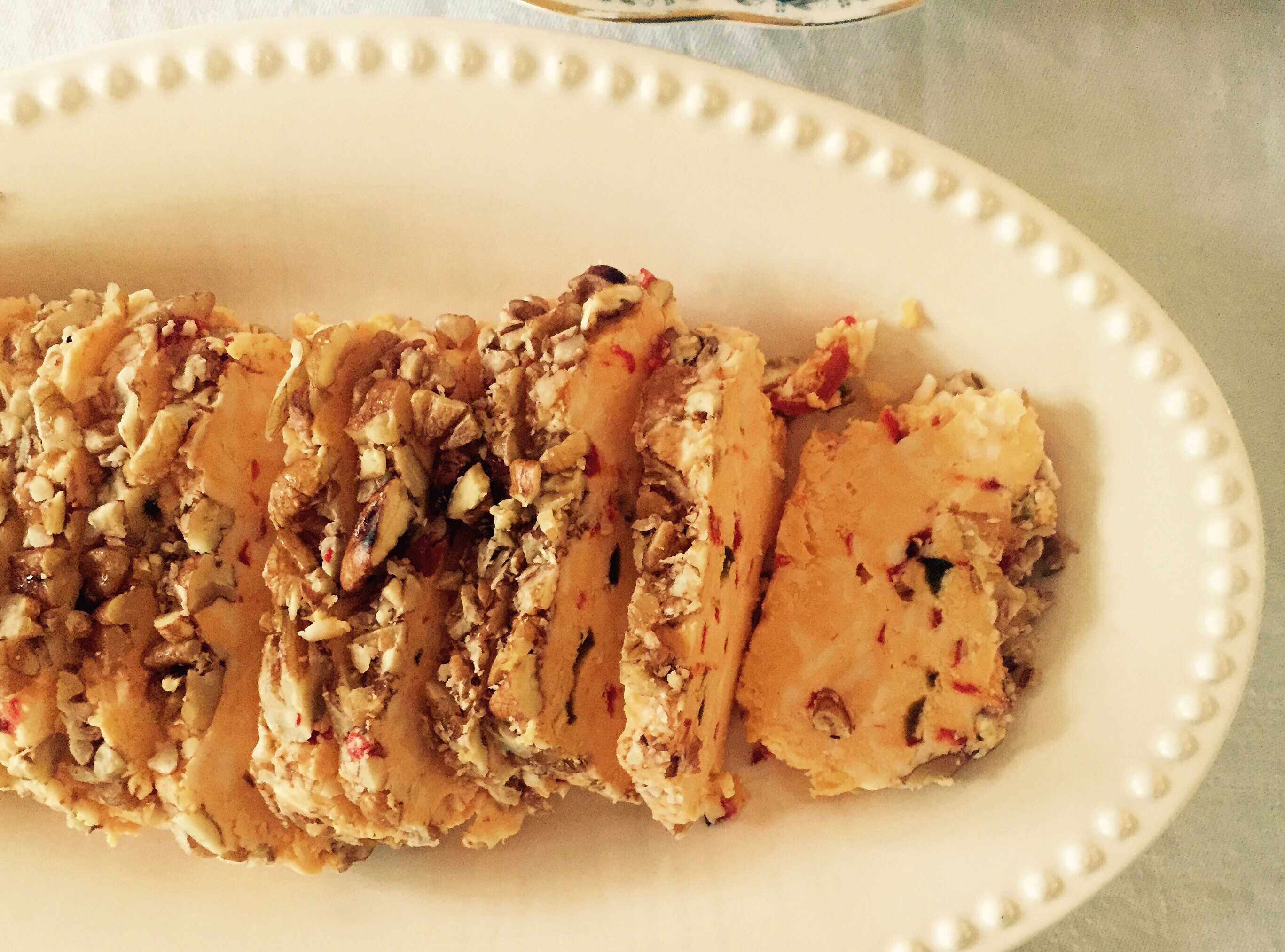 Mrs. Wheelbarrow’s Spicy Pimento Cheese with Candied Chiles. I froze this log of pimento cheese I got from Abbie so I could defrost it and serve it at the party. The recipe is a genius mayonnaise-less spin on the classic dip, with the stunning addition of home-canned candied chiles, which are sweet and spicy and addictive. The recipe’s not online so you’ll have to buy the book! Do it, do it now. I also froze and then defrosted and served the rest of that bag of cracker jill. Did you know you can freeze popped popcorn? You can! It’s science!