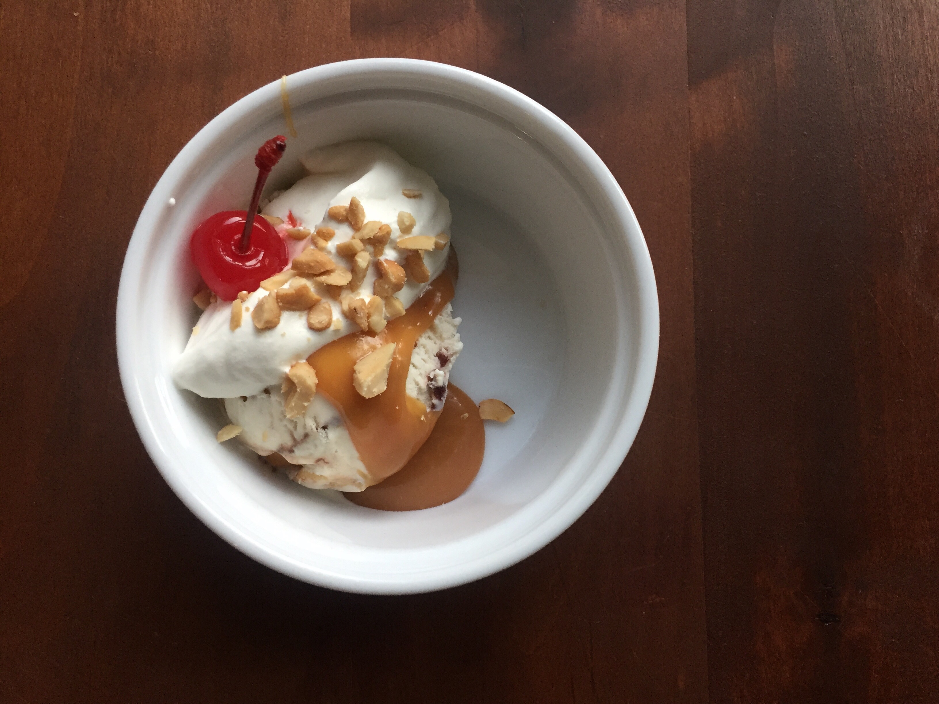 George wanted ice cream with cherries for his birthday dessert, so we had a sundae bar. He put a literal dozen cherries on his ice cream.