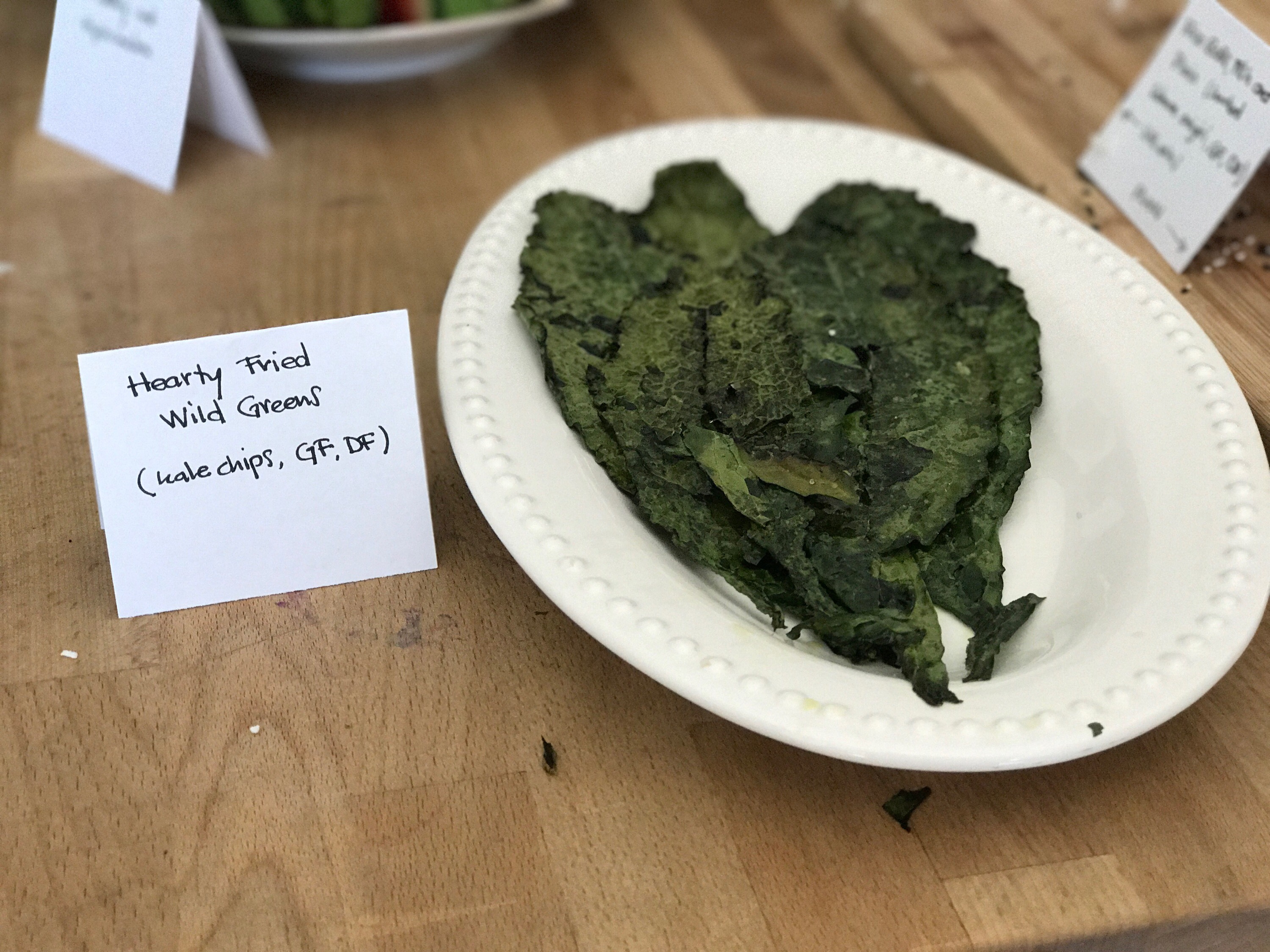 Kale chips are kind of a cruel thing to serve at a party because then everyone has little green flecks stuck in their teeth. I did it anyway. This is dino kale rubbed with olive oil and sprinkled with salt and roasted for about 10 minutes at 400 degrees.