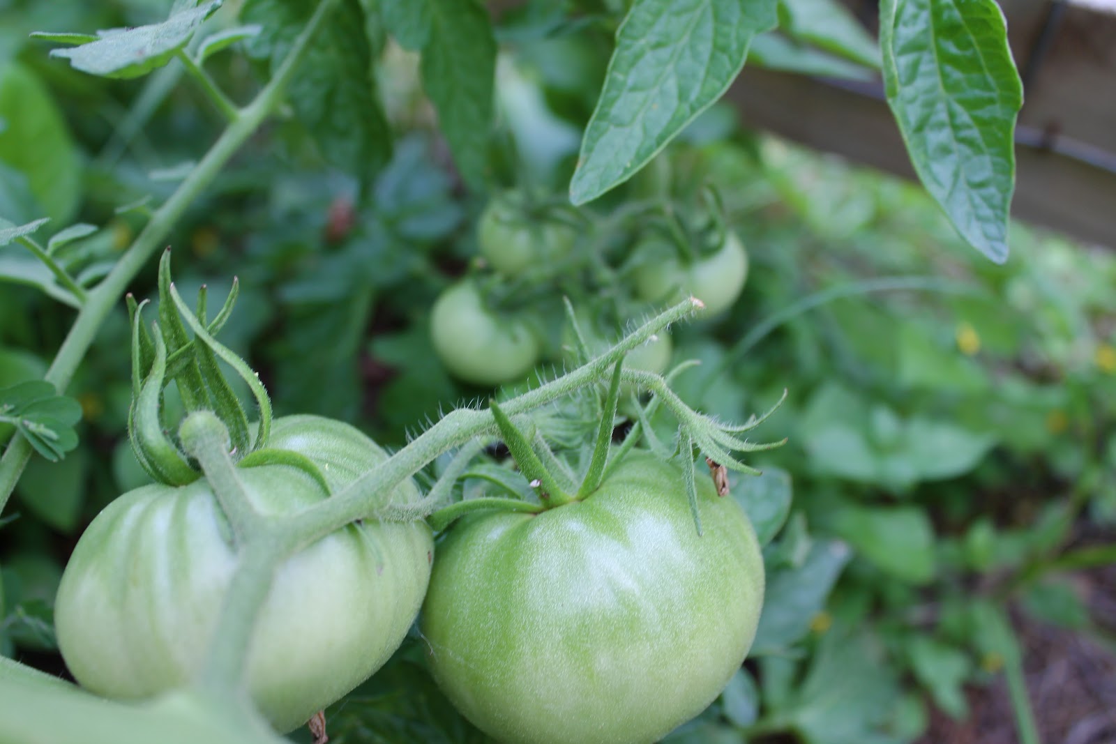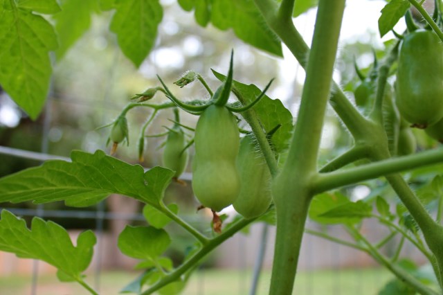 Ok- about tomatoes- do you guys actually let your tomatoes turn red on the vine? Am I losing a lot of flavor by picking them green and letting them ripen on a window sill? All my prior attempts at sun-ripening have ended with the tomato being stolen by squirrels or pecked apart by birds But aren’t these pretty? I’ve done really badly with tomatoes in the past (leaf-footed stinkbugs, hornworms, drought+heat+lazy watering) so it feels great to actually harvest some. Helen used the red ones to make a delicious tomato and mango salsa.