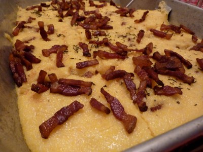 Now the real magic begins. This is a pan full of a fontina polenta, topped with crispy guanciale. I could have eaten these crispy bits by the fistful, and the polenta was a creamy, cheesy dream.