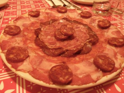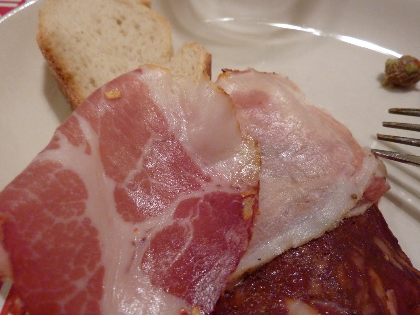 Andy and I had, as always, an incredible time at the annual National Puzzlers’ League convention, which was held in Seattle this year. No small part of our fun was experienced at Salumi, a restaurant specializing in artisan cured meats (big smile!). Our dear friend Artistry (quick side note: everyone in the NPL uses nicknames (noms) instead of real names, because we’re really cool. My nom is Expelliarmus, because it contains my real name (Arielle) and is an incantation in the Harry Potter books, to which I have sworn my undying love. Andy’s nom is Bonus, because our last name, Arizpe, anagrams to “A prize”. Fun huh? Right? Anyway, back to the story at hand) was able to secure one of the elusive private lunches at Salumi, which is owned by Mario Batali’s parents. Eight of us gathered around a tiny table in the back of the tiny restaurant, and were treated to an absolutely brilliant lunch. Here are the pictures!
