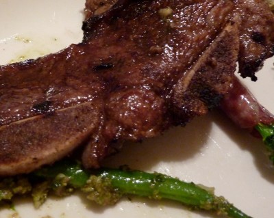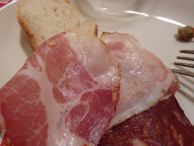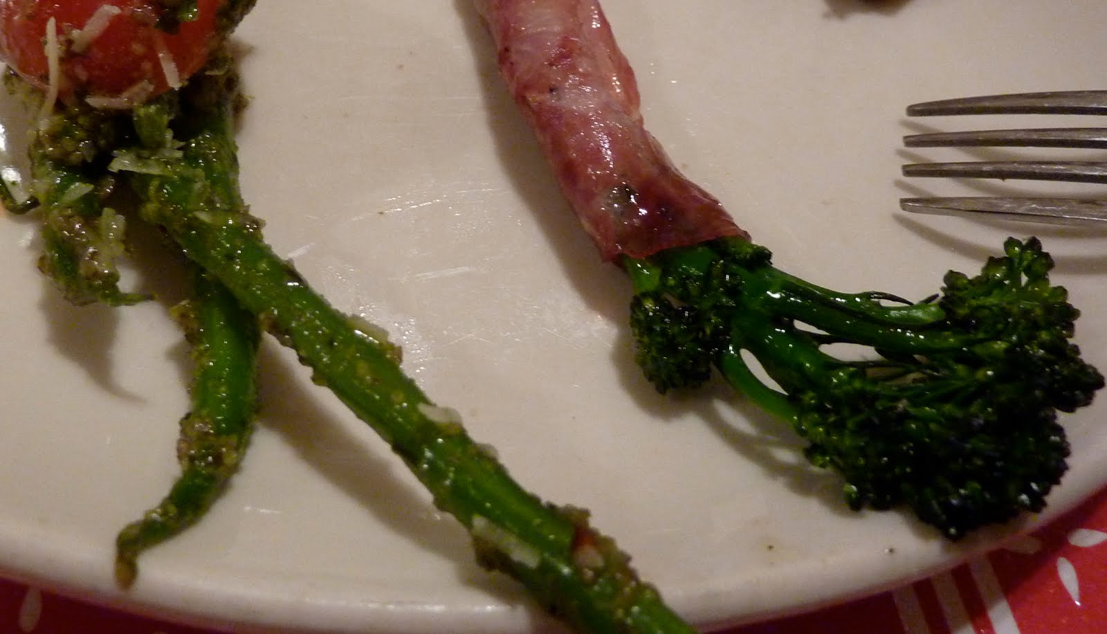 And look at this next one! Even the vegetables here are covered in meat! This is broccolini wrapped in salami and a green bean and tomato salad dressed with pesto and parmesan. That broccolini might have been my favorite dish.