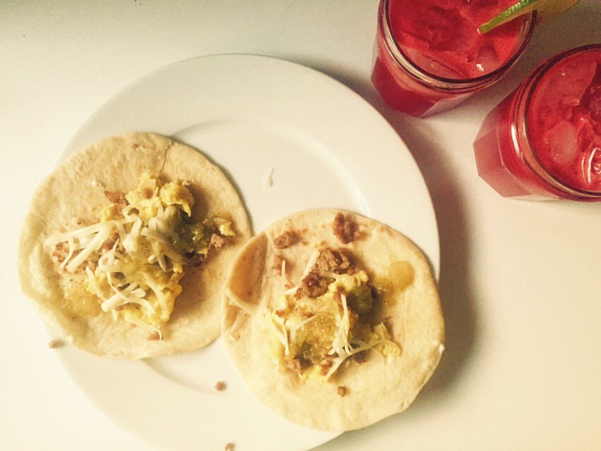 Sausage and Egg Breakfast Tacos. You know, it’s some sausage and egg on a tortilla.