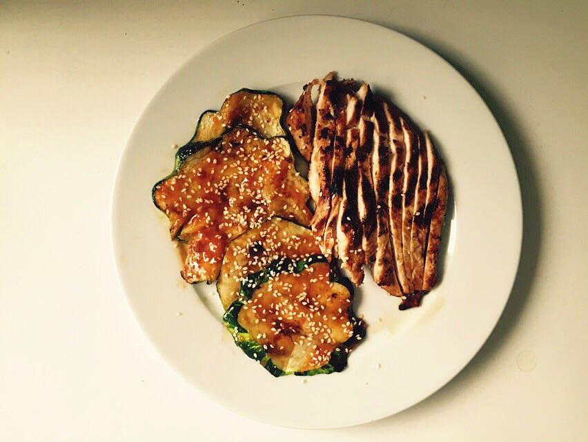 Ginger-Marinated Bulgogi-Style Chicken, Grilled Summer Squash with Ssamjang Sauce. Back before everything became pizza and sugar-treats, we ate a lean chicken breast and grilled squash for dinner! And, you guys, they were both awesome. This was the best chicken breast marinade of all time. Make it do it now. Also, buy some ssamjang if you can get your hands on it. It’s like gochujang, that korean pepper paste that you squeeze on bibimbap, with the addition of fermented beans. Fermented beans! It tastes delicious. I mixed some with a splash of oil and vinegar and brushed it on the grilled squash and I loved it. I wish I knew more Korean words to mix into my writing because they seem to really liven things up.