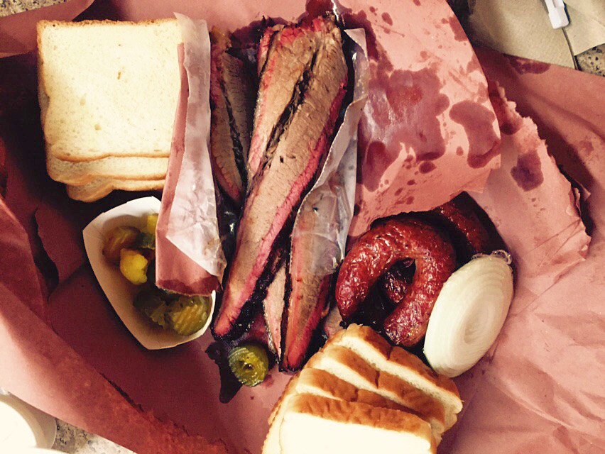 Barbecue from City Market in Luling. Our drive down to the beach took us through barbecue country. We stopped in Luling, which is charming except for the stench of crude oil which hangs over the city like an oppressive, filthy blanket, and stood in line for 40 minutes for this pile of meats. I think I like the barbecue in Lockhart better- the sausage here was rad, but the brisket was uneven- the fatty parts were great, the leaner parts were dry and chewy. We loved the sides though, and I loved that you could buy a block of sweaty, room-temperature mild cheddar to eat with your ‘cue.